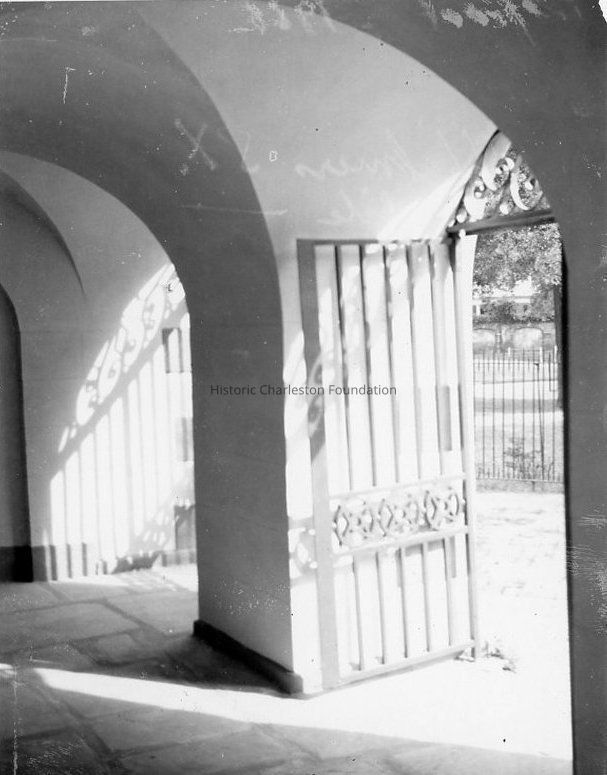 h: Detail of the ironwork and columns viewed from the interior of the basement arcade.*