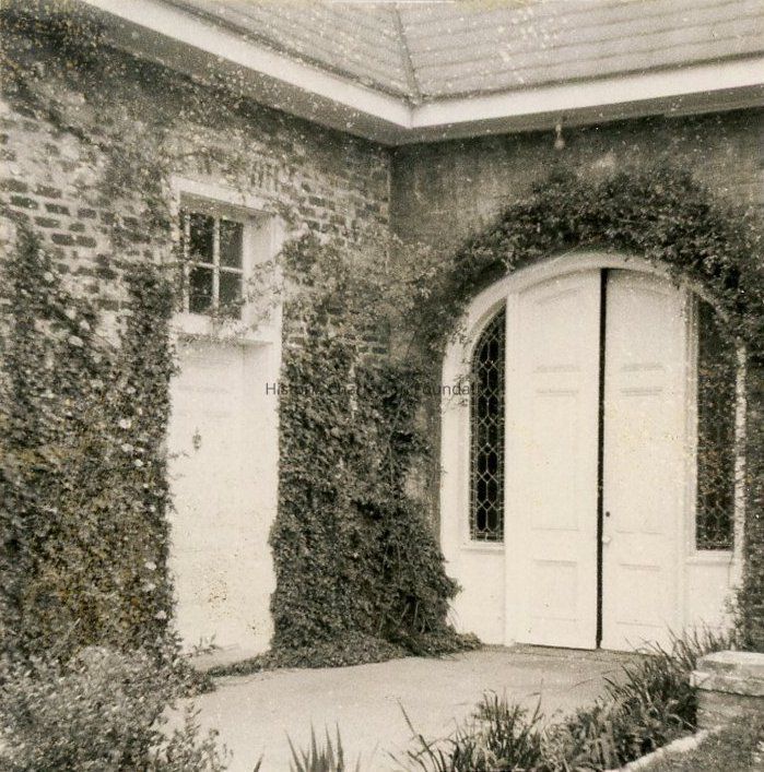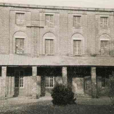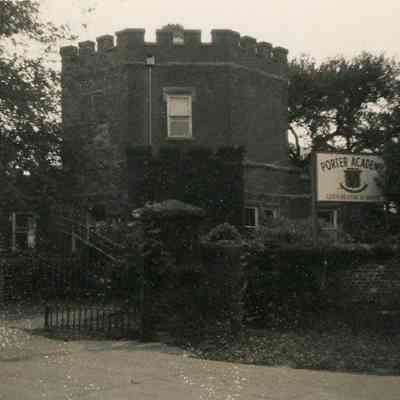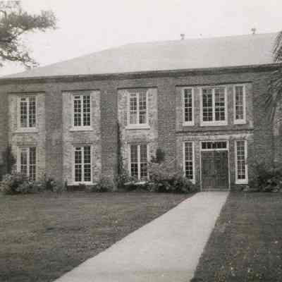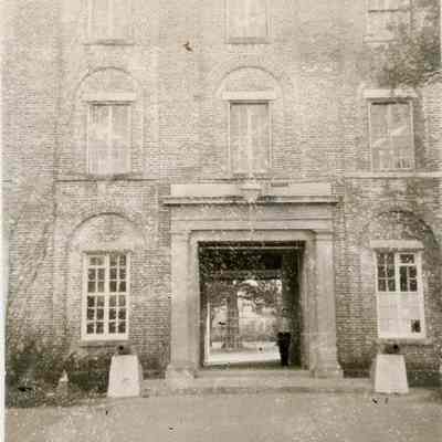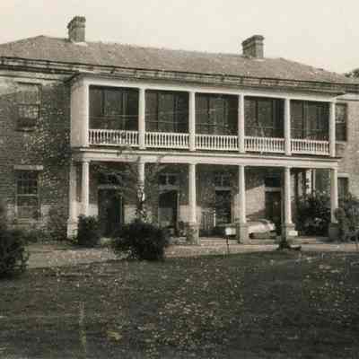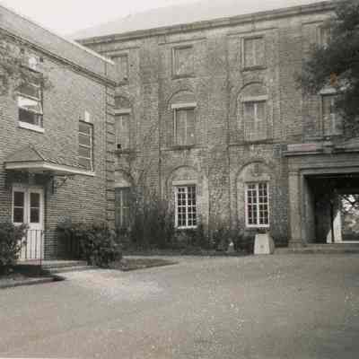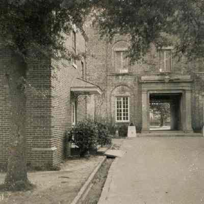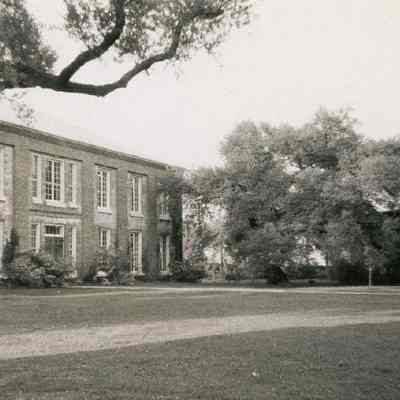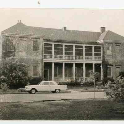 k: View of the Hoffman Library, now known as the Waring Historical Library. Sign stands at the right of the building: "Porter Military Academy - Established 1867."