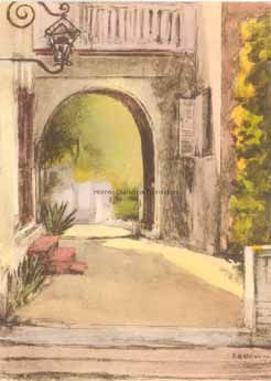 Postcard (scan) featuring the gateway of 4 South Battery (Villa Margherita).Collection