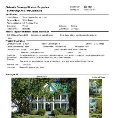 Wade Hampton Graham House (a/k/a White Gables), McClellanville, Ater Hurricane HugoEntry/Object ID