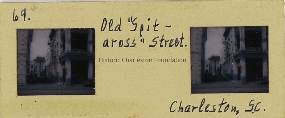 Captioned "Old 'spit-across' street.