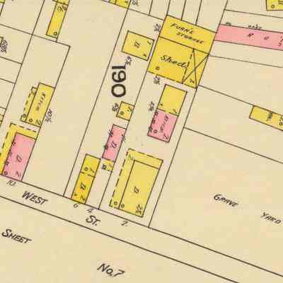 This small thoroughfare, like the rest of the area, became a prime site for brothels by the mid-19th century, and most of its original buildings have been demolished. A fine two-story dwelling at 9 West Street, however, was built before 1830 as an investment by Dr. William Kirkland, the owner of 116 Church Street.