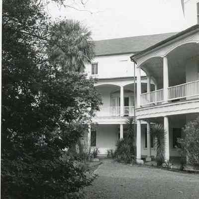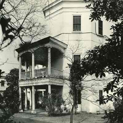 a-c: Views of exterior. Typed on back of Photos B and C: "The Charleston Division offices of the Southern Railway System of Charleston, S.C., occupies this 150-year-old mansion once owned by William Aiken, first president of the South Carolina Canal and Railroad Company, a predecessor of the Southern. Later occupied by his son, Governor Aiken of South Carolina, it was acquired by the SCC&RR Co. in 1830 and is now one of the showplaces of Charleston."