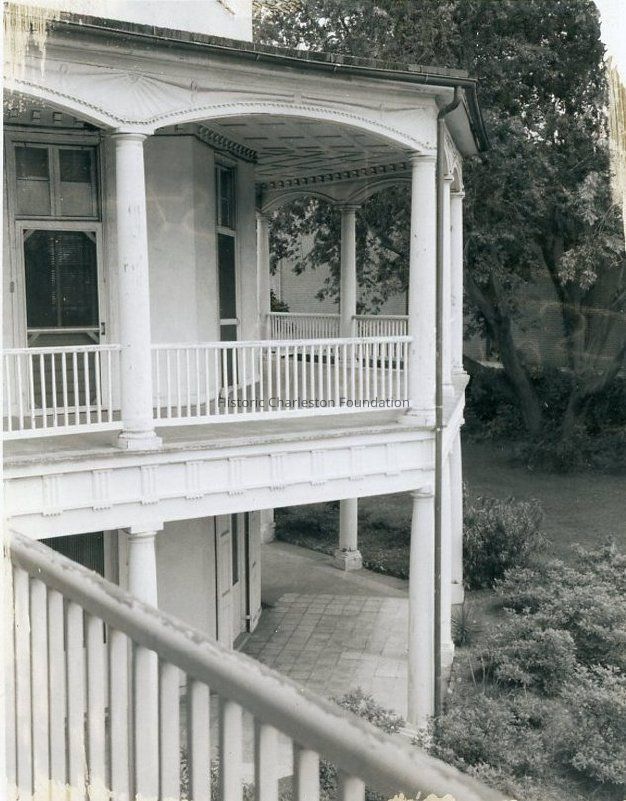 a: View of the piazzas on the west elevation taken from the second-story piazza on the south elevation.