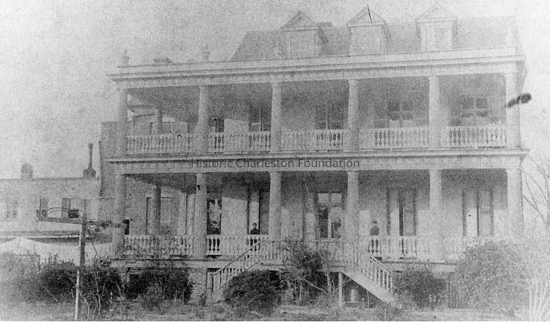 Reprint of a historic photograph of the William Pinckney Shingler House (9 Limehouse Street), south (piazzas) elevation, showing the former piazza stair.Collection