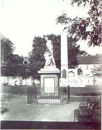 Charleston's statue of Pitt cost $1,000, a sum voted in May, 1766 by the Commons of the Assembly. In typical 18th century style, the statue portrays Pitt as a Roman orator clad in a toga, with one arm holding a scroll. The other arm, which was upraised, was broken off in 1780 by a shell fired from a British battery on James Island. The head was broken off accidentally when the statue was removed from the intersection in 1794, when it was considered an obstruction to traffic. It was first stored and later set up in the yard of the Orphan House, where the children described the figure as "George Washington just getting out of bed." In 1891, the statue was moved to Washington Square. (Source: CCPL website)Collection