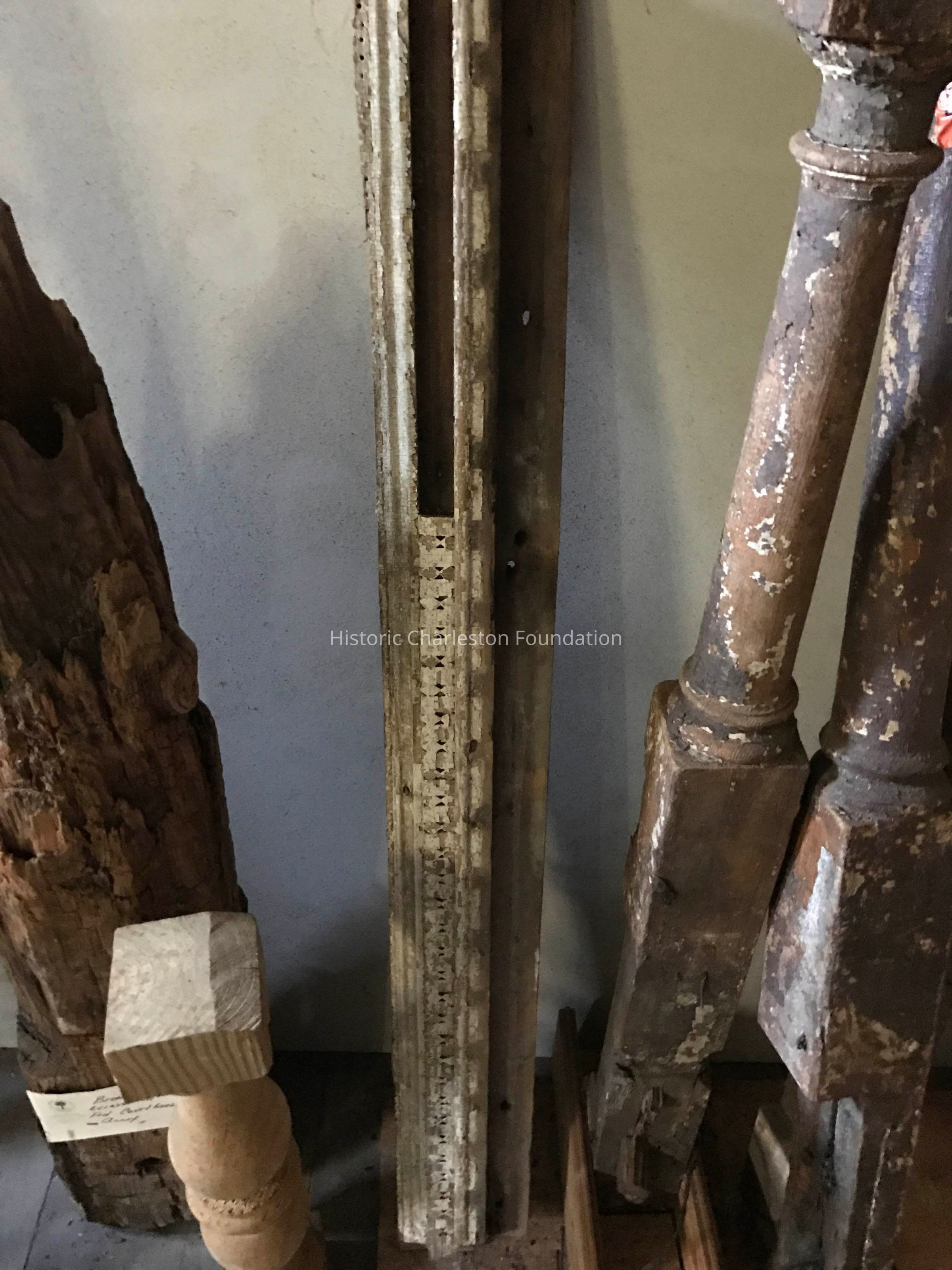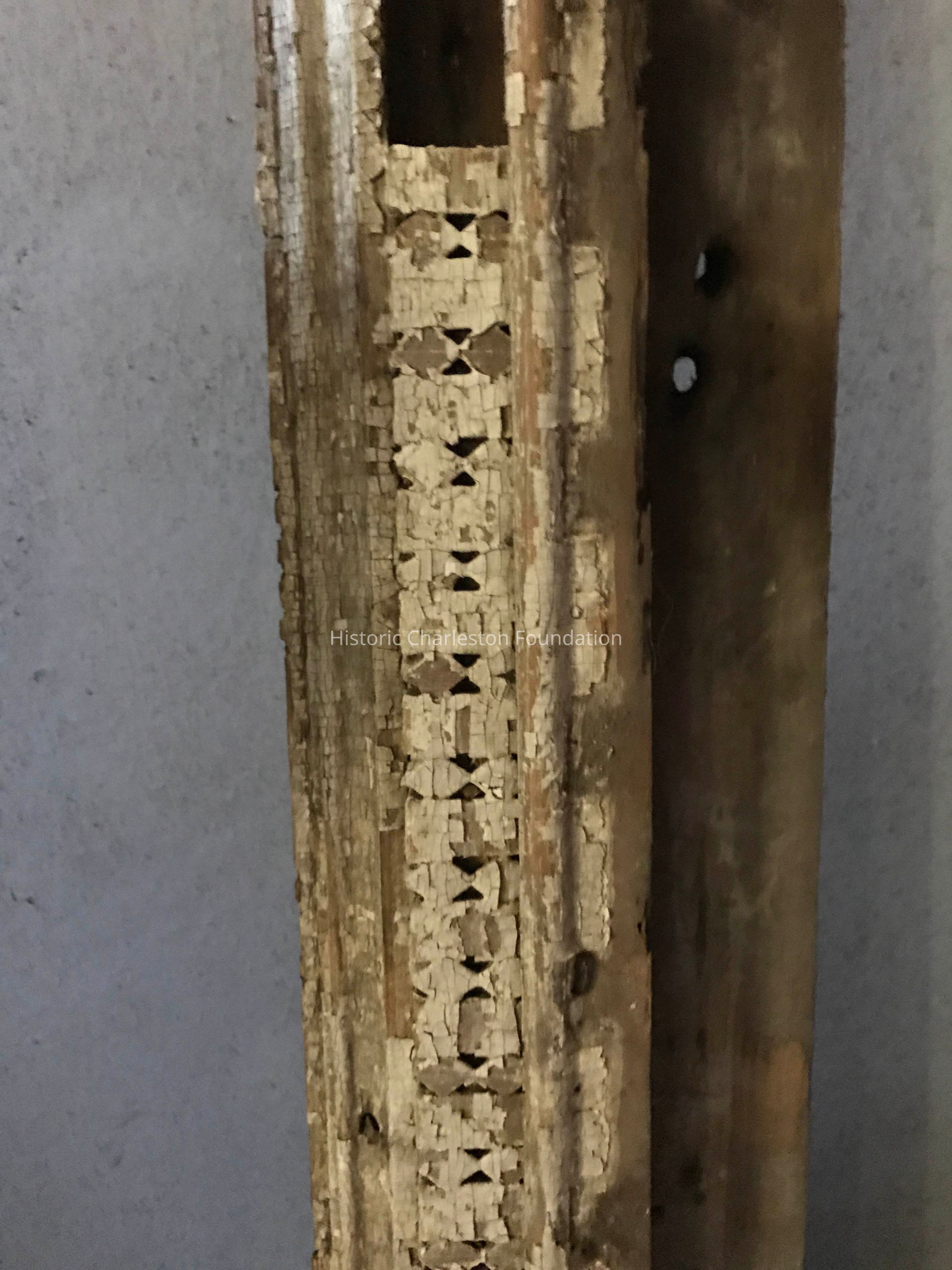 Wood molding. Not all intact; chipping and cracking paint; water stains.Collection
