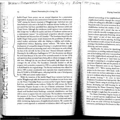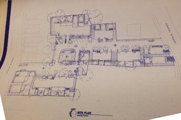 Twenty-seven townhouses constructed on a 1.8 acre site acquired by Historic Charleston Foundation ca. 1977 and later developed by Morton Needle. An architectural competition was initiated after HCF acquired the site and the design submitted by the Columbia, SC, firm Heyward and Salmons was selected. The project was delayed because of national economic issues at the time and HCF eventually decided to sell the property with protective covenants in 1985 to a private developer, Morton Needle, who chose to build based on the original design. The infill development is now known as Wraggborough Square.