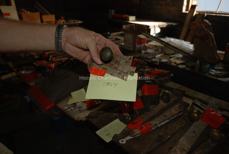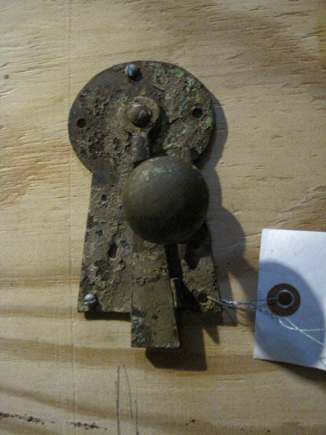 Wrought iron door lock with early brass knobs.Collection