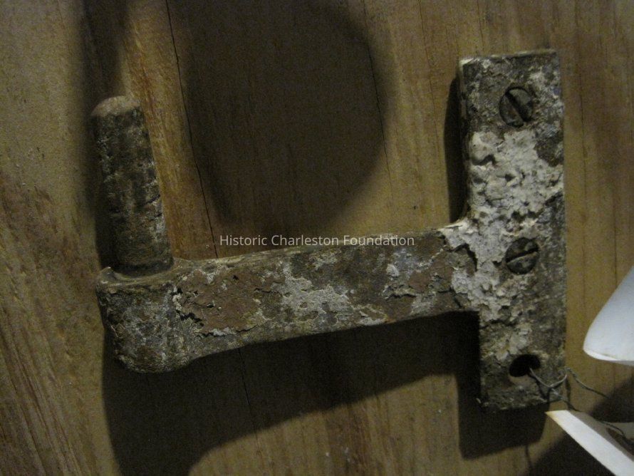 One pintle hinge from a group of five. Heavy, in the Parliament style with jamb mounts.Collection