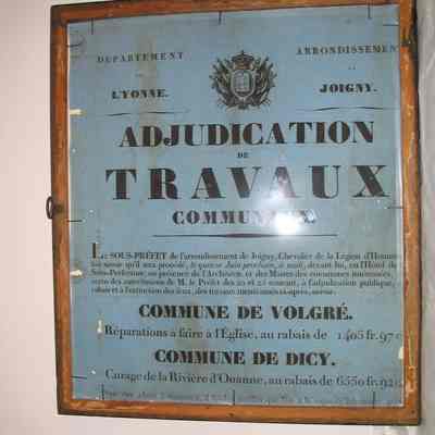 Scope of work: The pieces of paper were removed from the glass pieces using paint stripper having methylene chloride and toluene in it. The varnish was further removed from the front of the image using acetone and toluene. The pieves of the picture were reinforced with Hapanese paper an dmethyl cellulose adhesive adn the picture was given a backing using htis. The missing areas were filled with paper pulp made from kozo fiber, a a third backing was given. The losses were inpainted using Windor and Newton Watercolors and some Rembrandt acrylic colors. The broadside was washed and buffered with calcium hydroxide water which froms calcium carbonated in the paper fibers upon drying. It was dried, then inserted between two pieces of mylar into the back of the frame. A new glass mat was made by Veda and Bret Headley, Winchester, Virginia, using old glass, gold leaf, and black oil paint. The paper ws archivally hinged using Japanese paper/starch paste into a mat of buffered ragboard and reframed in a sealed package consisting of the glass, matted picture, and 5 mil Mylar D on the back, taped arond the edges with 3M 810 tape. Before and after treatment Agfachrome sildes and digital pictures were taken.