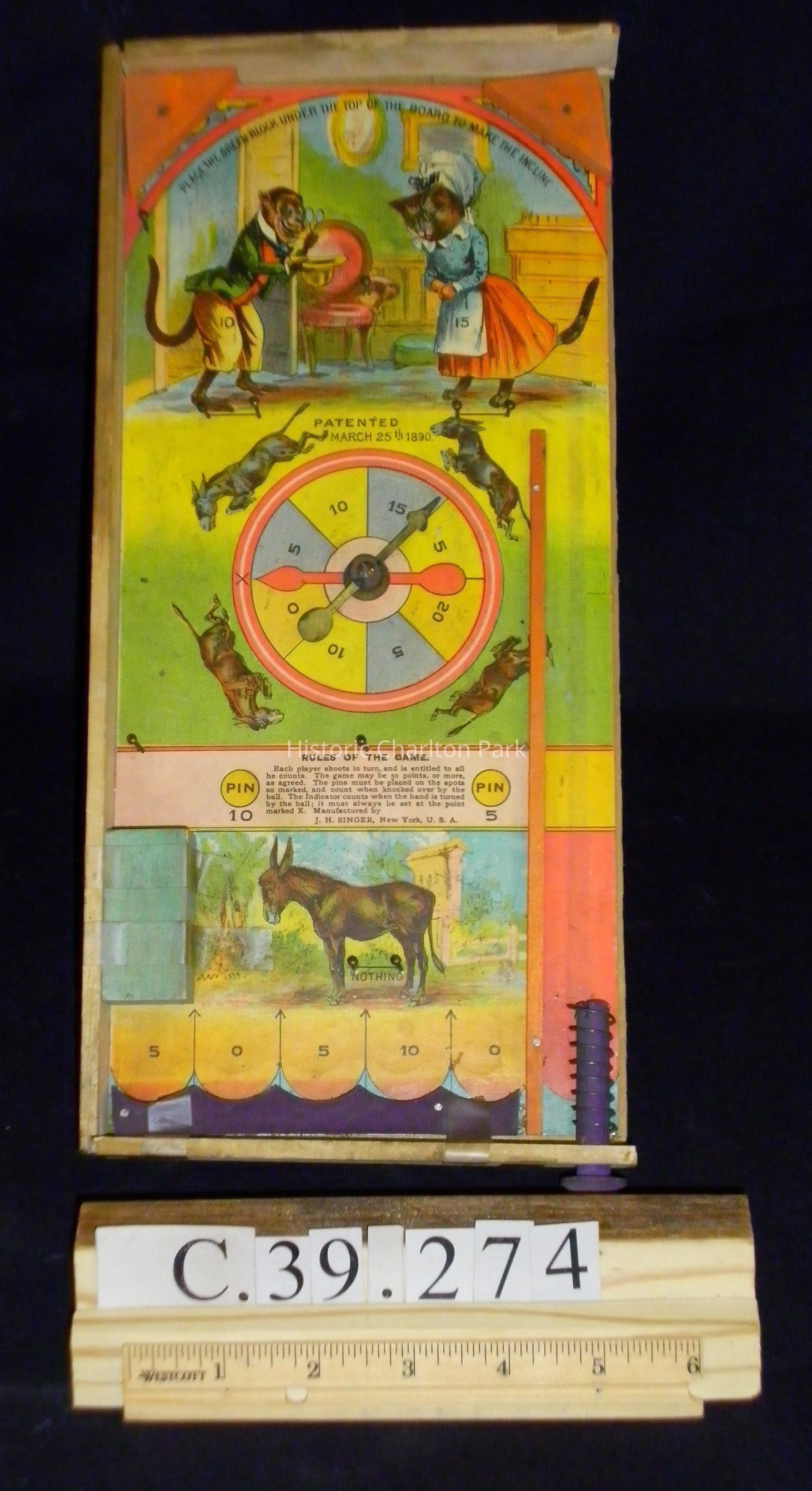 Jasper Hamlet Singer was the son of the founder of the Singer Sewing Machine Company. He was born in 1847 and manufactured games from around 1880 until 1902 when he filed for bankruptcy.Dimensions