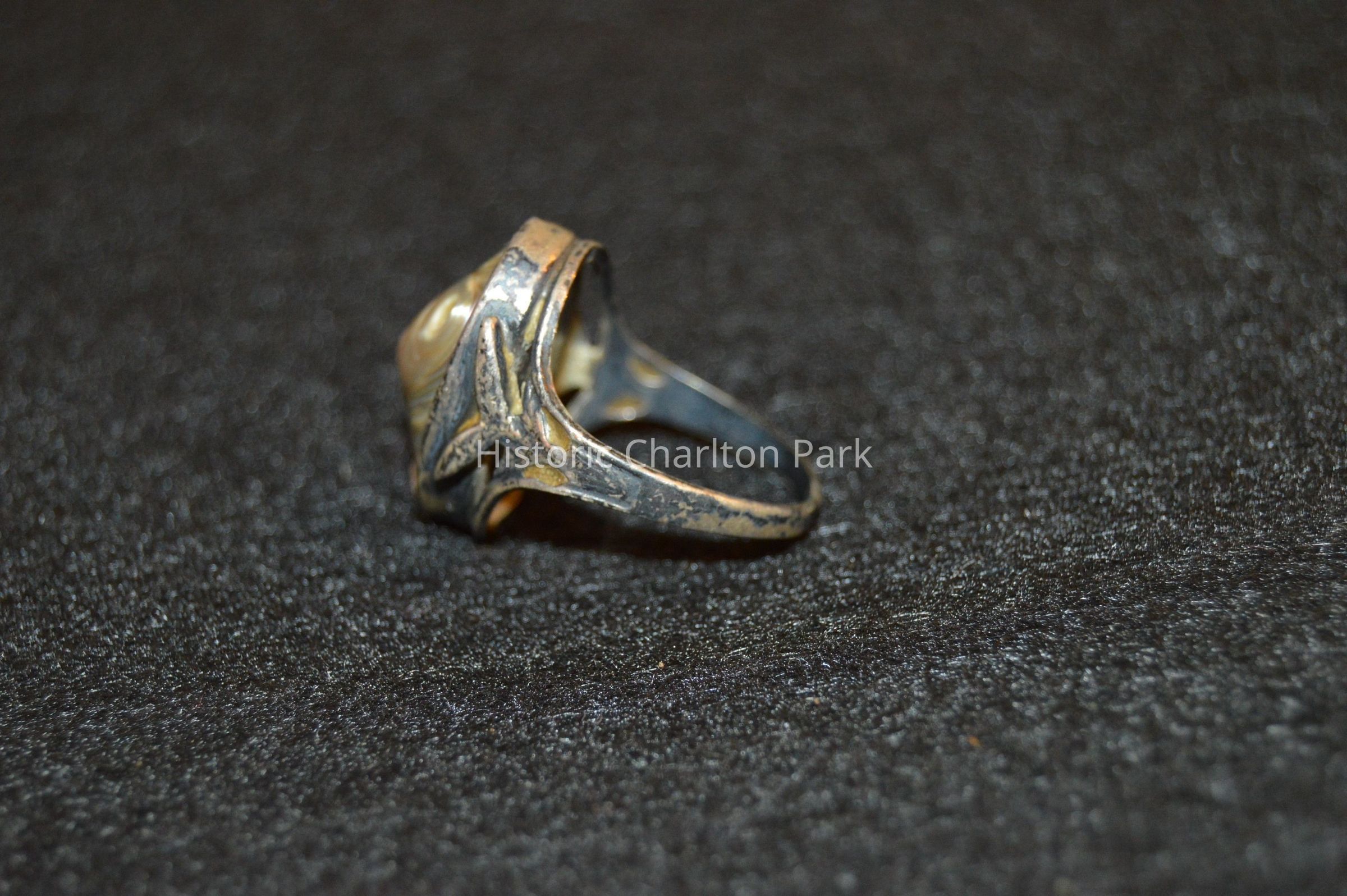During the Arts & Crafts movement (1860-1915), jewelers rejected the mass production of jewelry by focusing on making unique handmade pieces of jewelry. Arts & Crafts jewelry often used stones that were smoothed and polished, called cabochons, instead of faceted stones that are common today. This style of jewelry prioritized designs that were personal, very detailed, and hard to copy. Arts & Crafts jewelry often included natural shapes like flowers, leaves, and vines, as well as some geometric patterns.Acquisition
