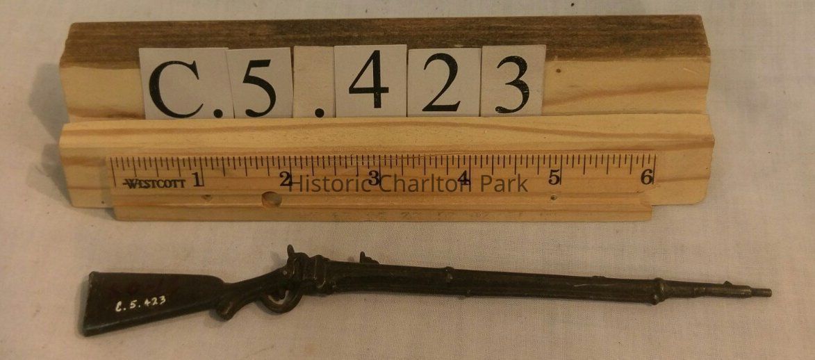 This little toy rifle is made out of metal. It is only about 7" in length and very skinny. Probably picked up as a souvenir.