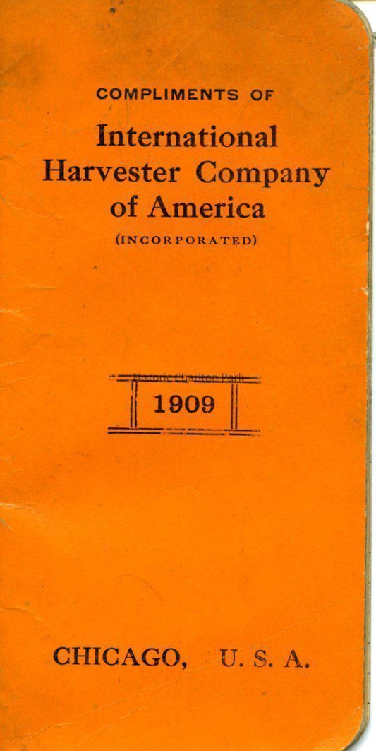 Memorandum notebook & 1909 calendar from International Harvester Company of