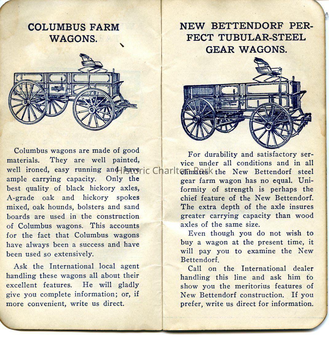 Memorandum notebook & 1909 calendar from International Harvester Company of America. Includes pictures and information about farm wagons and equipment.