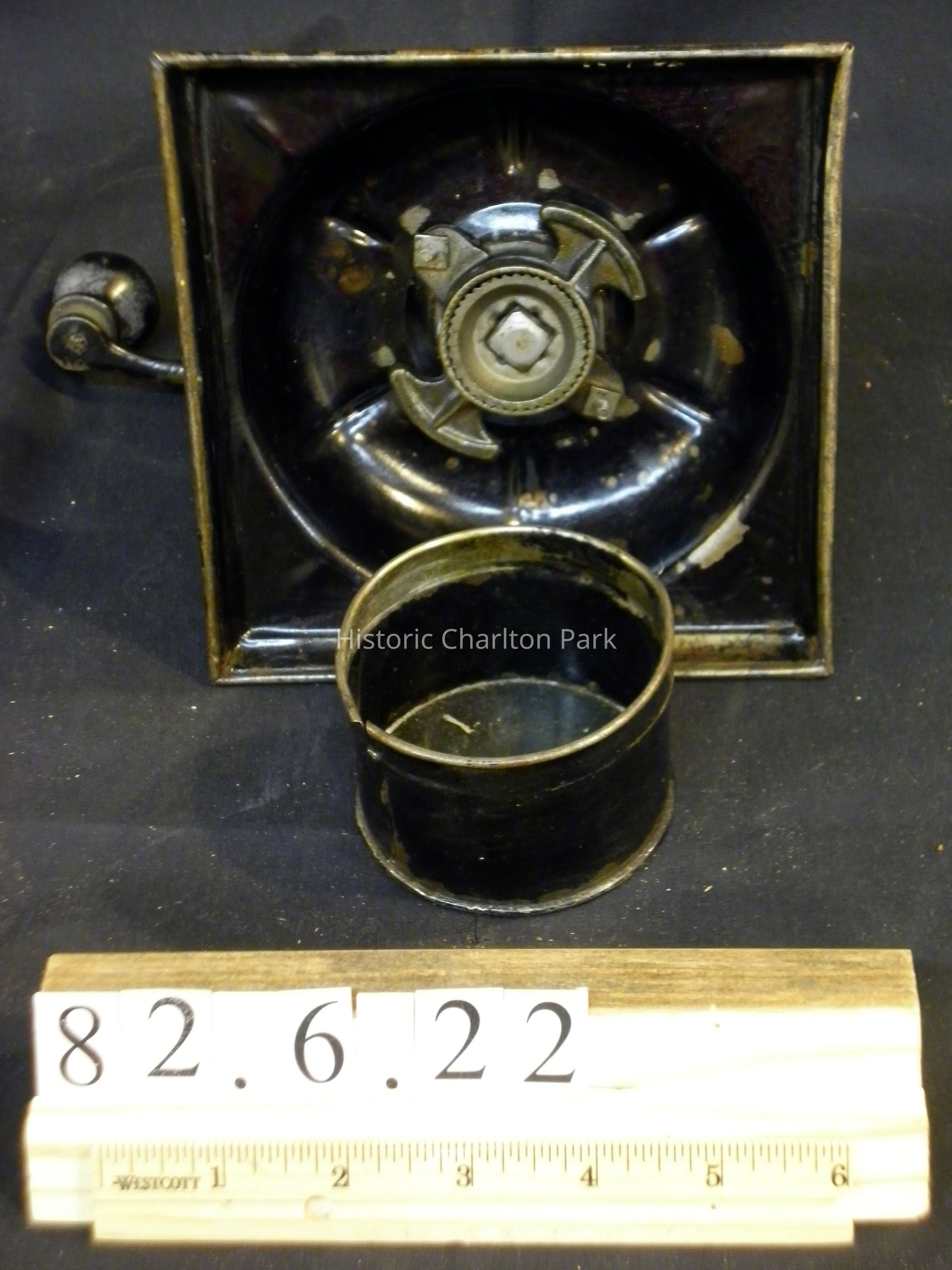 Manufacture by: Bronson-Walton Co, Cleveland, OH., c. 1905. The Bronson and Walton Company was a Cleveland-based metal kitchen goods manufacturer that produced coffee grinders from 1901 to 1916Acquisition