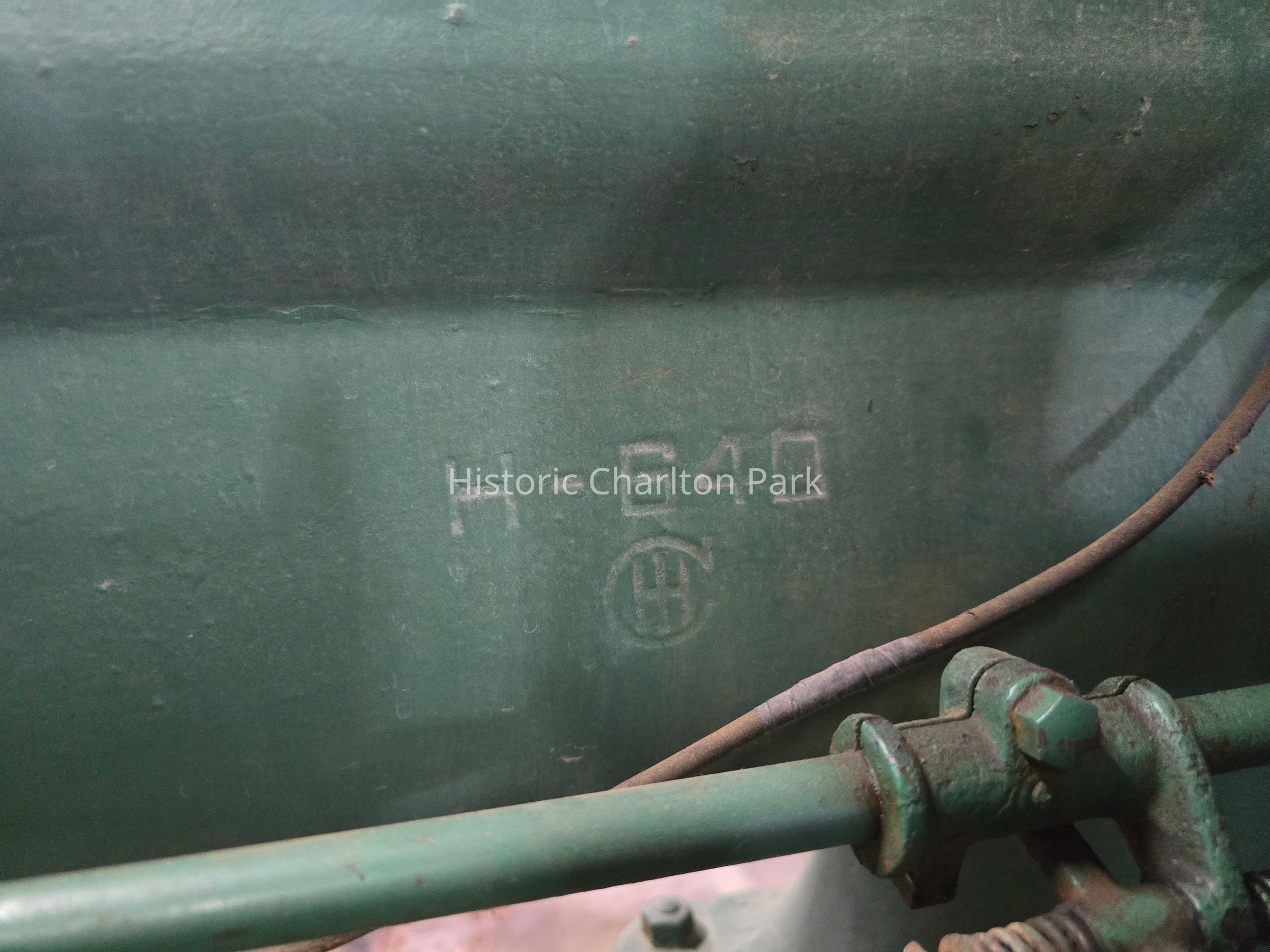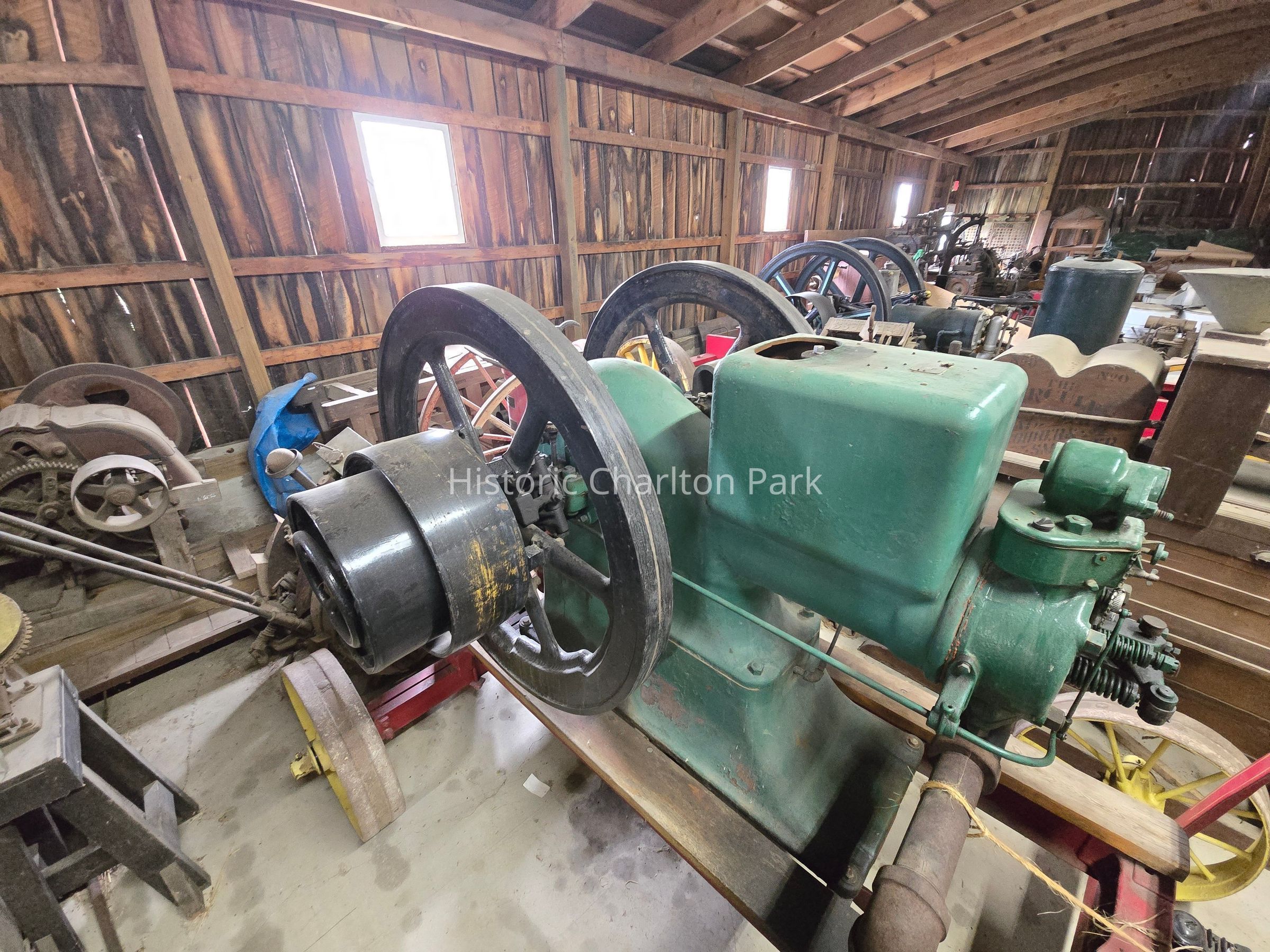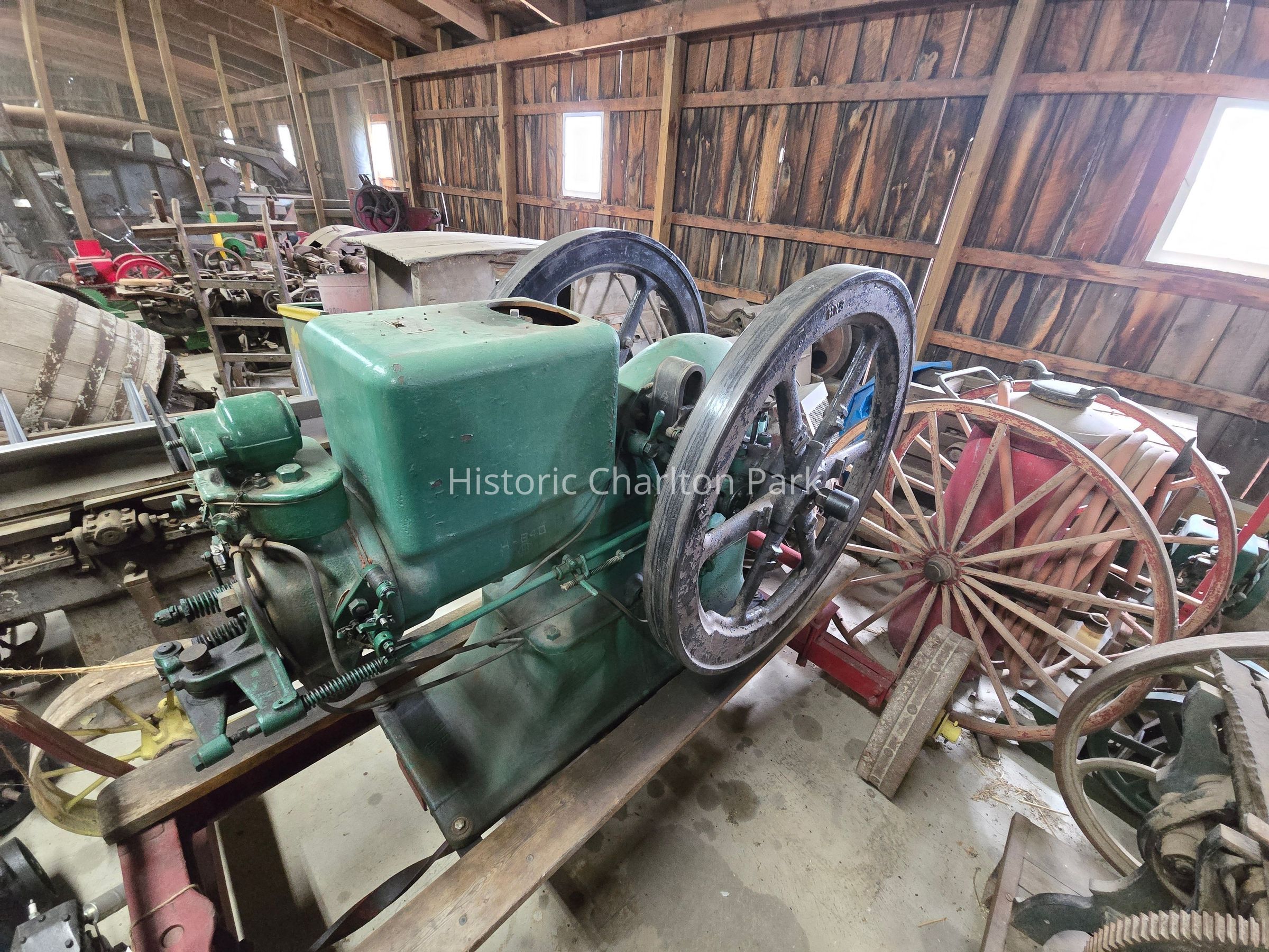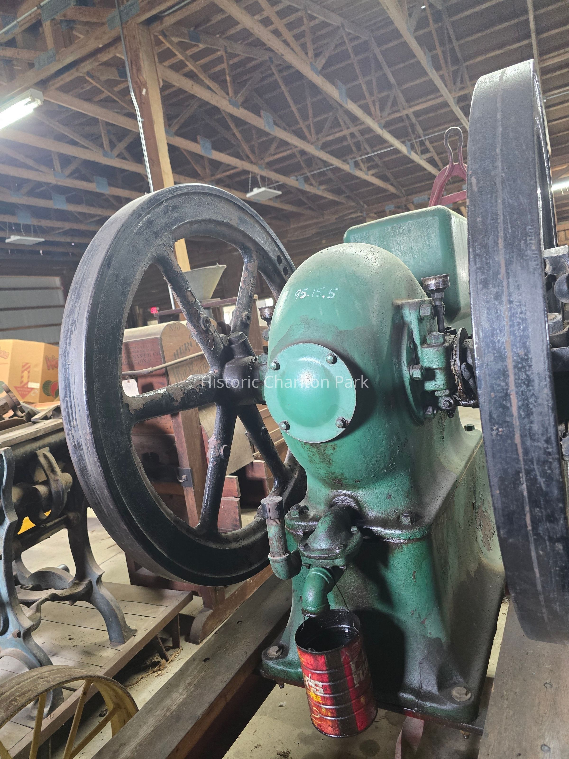 Gasoline/Kerosene engine, 10 hp, made by McCormick Deering for International Harvester, based on logo on the side. Serial #D4246; Speed 425, H-640. Manufactured c. 1926 based on serial number.
