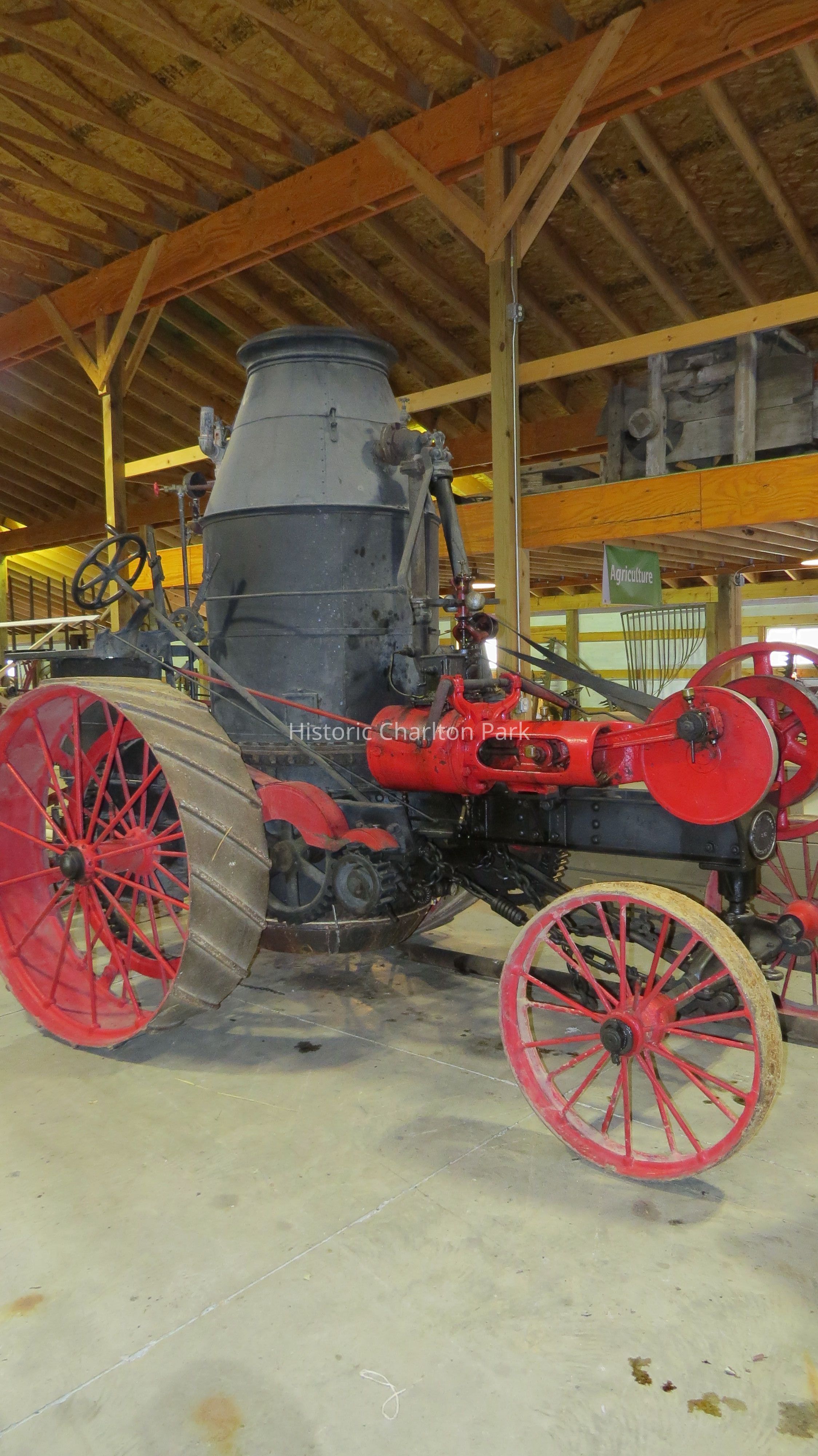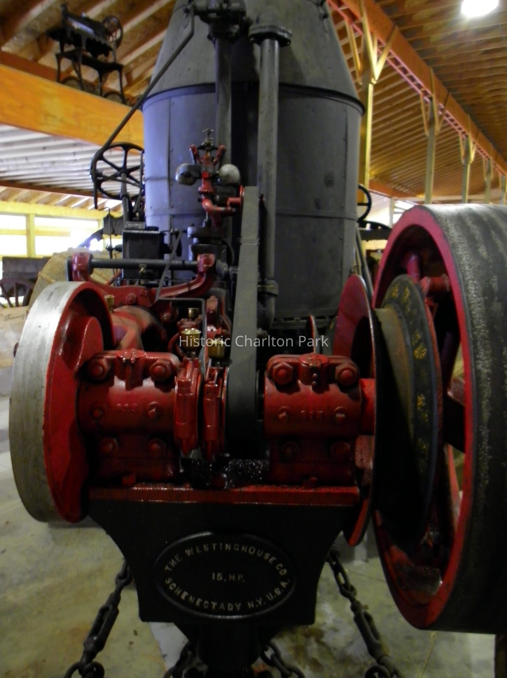 A 15 horsepower steam traction engine manufactured by The Westinghouse Company in Schenectady, NY. Patent dates on the boiler read, May 20, 1884; September 27, 1881 and August 12, 1879. It was restored by Russell Chaffee in the early 1980's.
