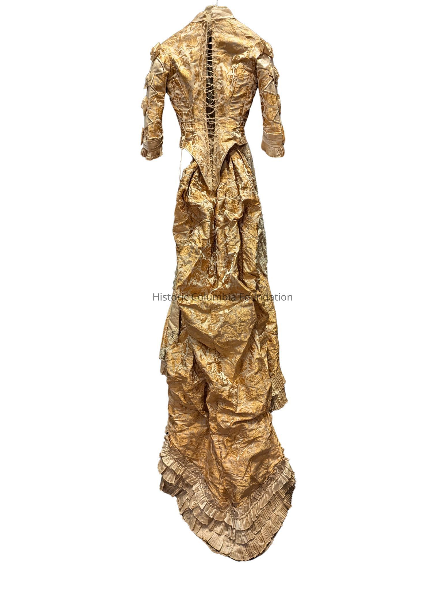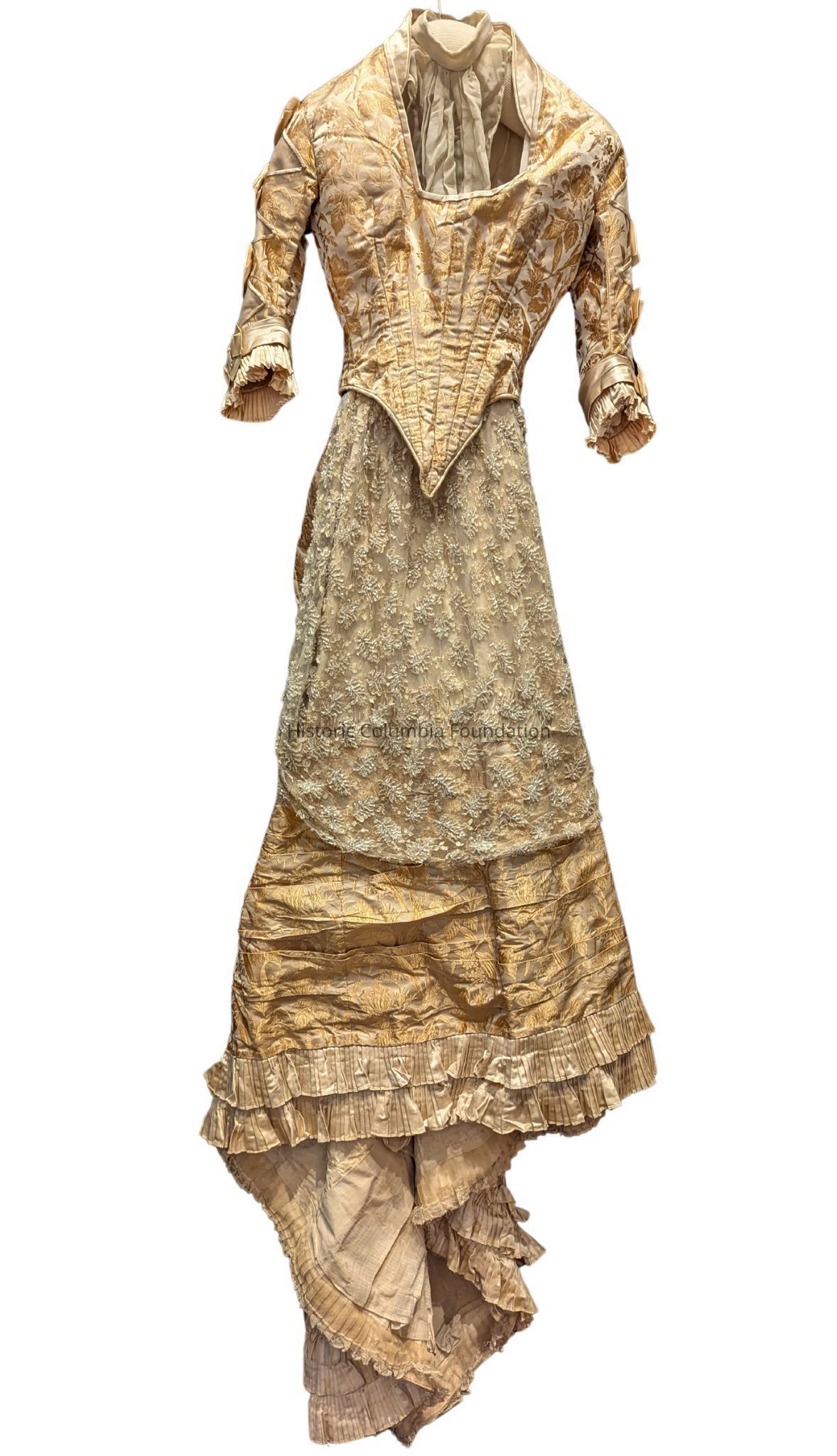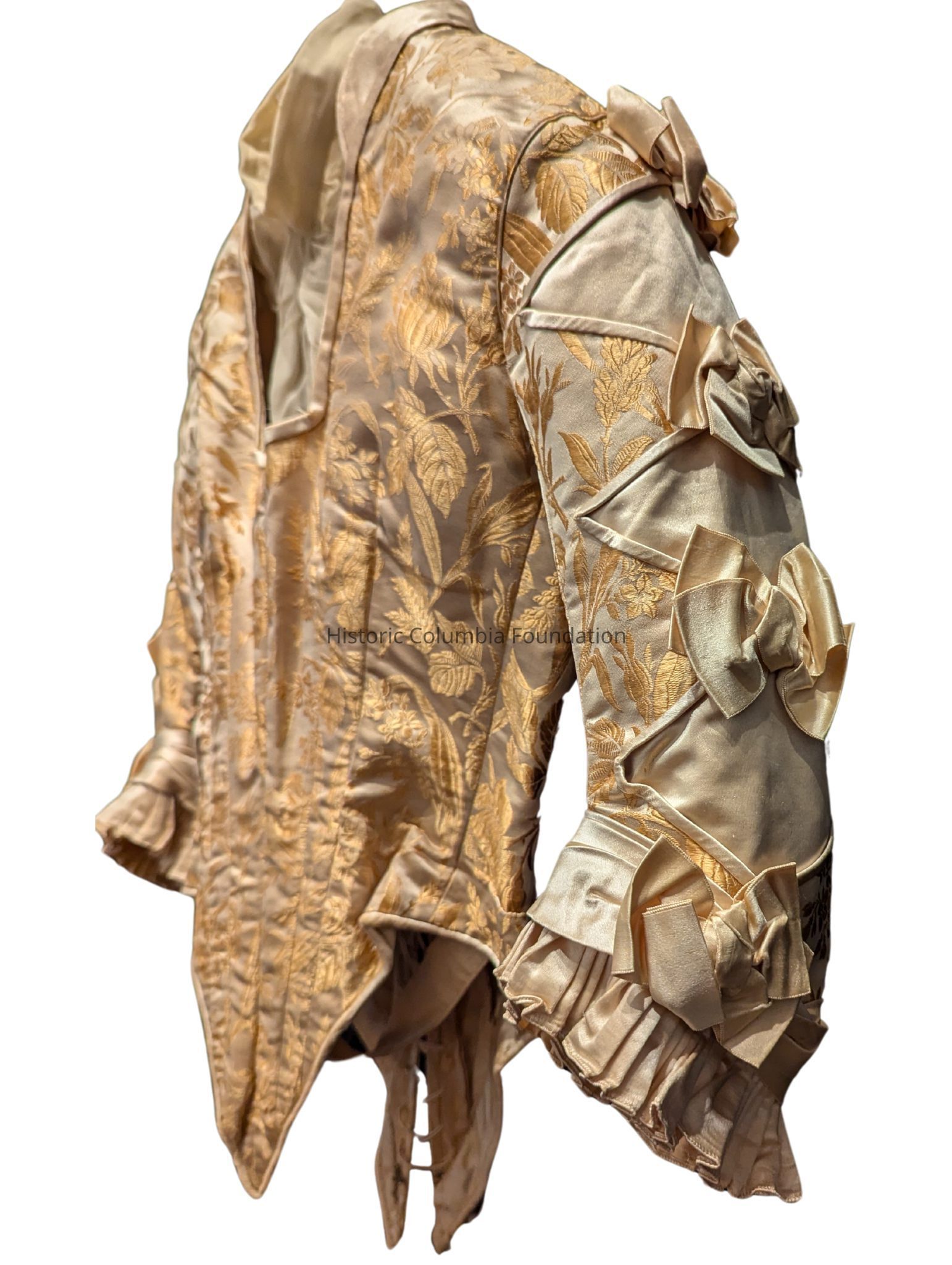 This dress was worn by Leila Bernard Meredith (1861–1947) on her wedding day. She and her husband, Richard Irvine Manning III (1859–1931), were married February 10th, 1881 in Richmond, Virginia. Leila's father, John Alexander Meredith (1814–1882), was the first Circuit Court judge of Richmond and a member of the Virginia State Senate. He also played a crucial role during the Civil War when the city was burned.