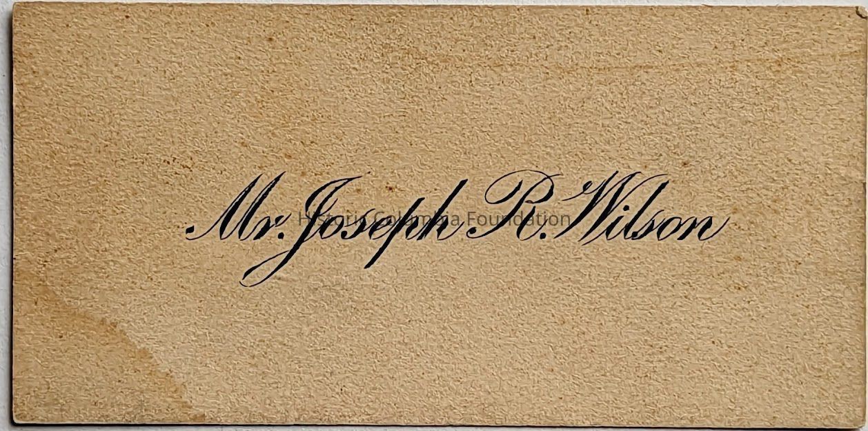 Small, rectangular tan card with the name "Mr. Joseph R. Wilson" written in black ink on one side.Use