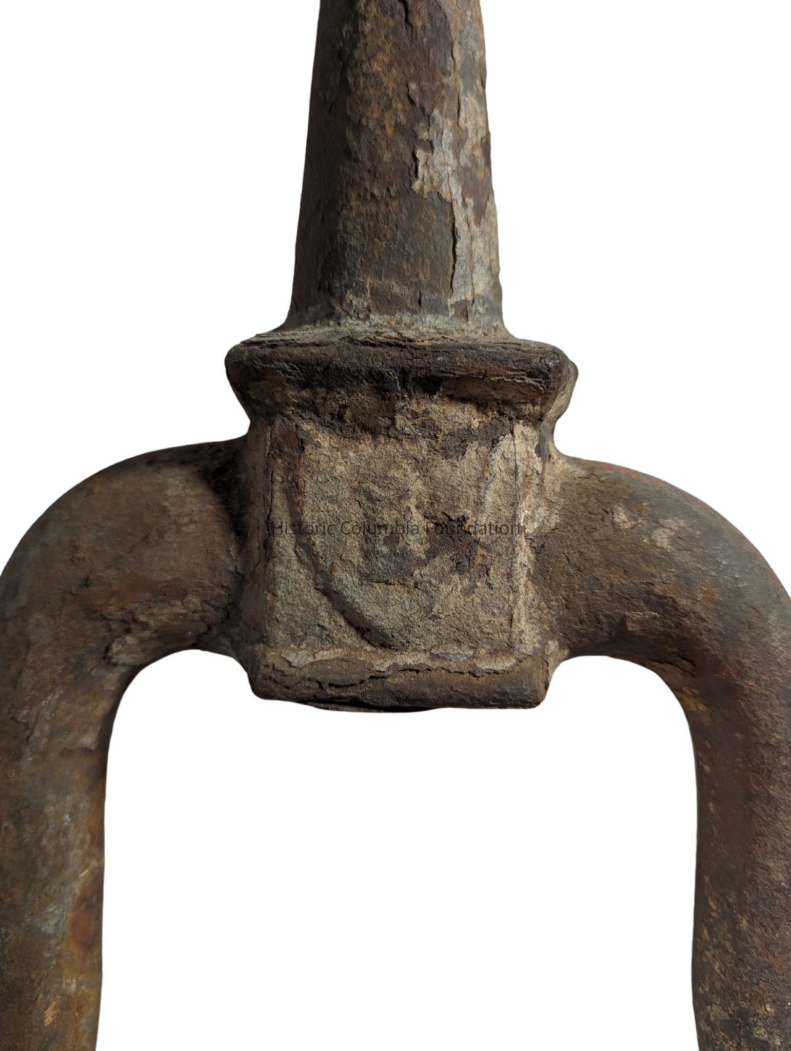 Andirons, also called fire dogs, support wooden logs as they burn in a fireplace. In elevating the logs off the ground, andirons allow air to flow under the logs and create a better fire with less smoke. The vertical key-shaped standards in the front prevent burning logs from rolling off the fire and into the room.