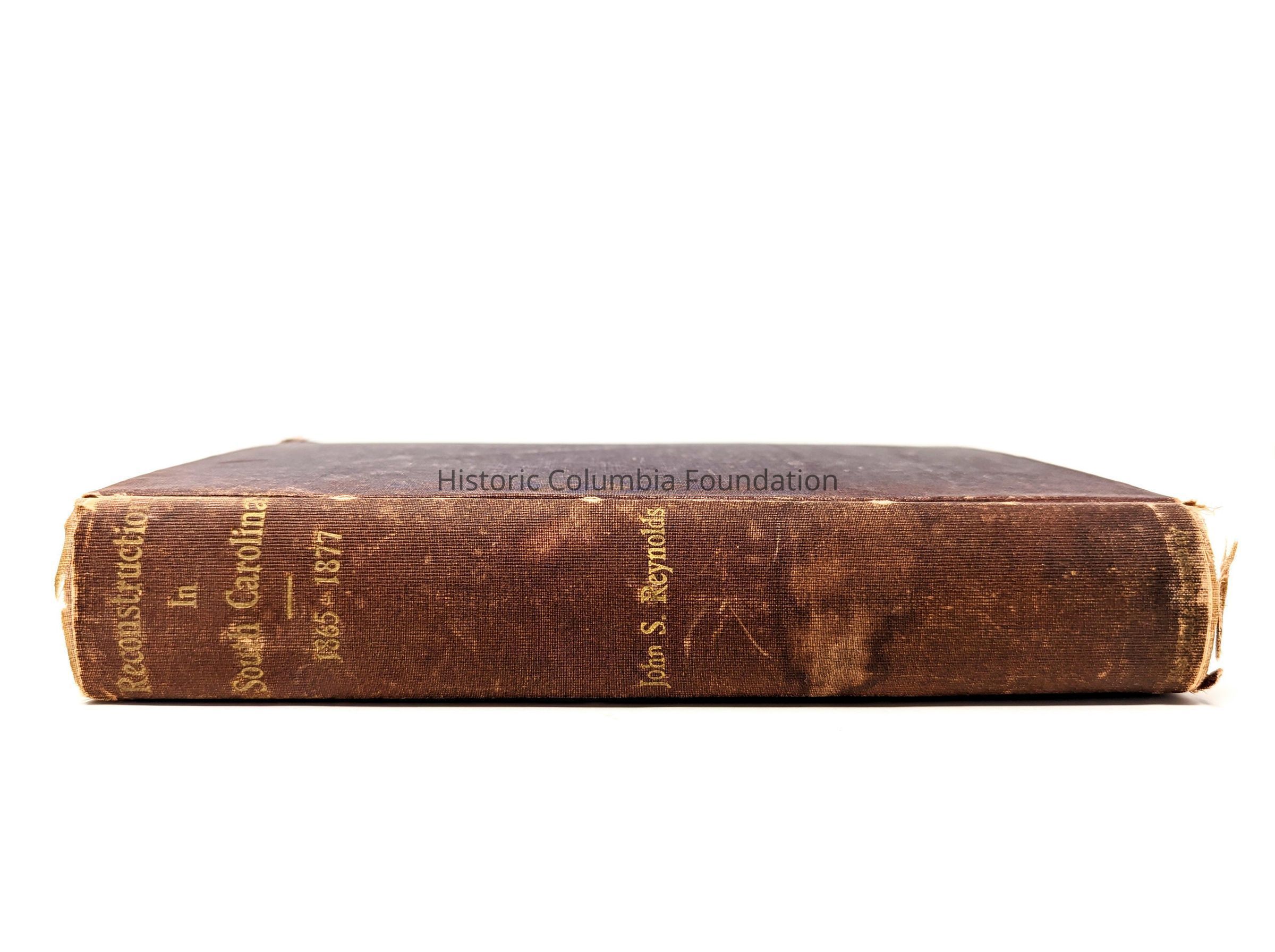 Brown-covered book. While there is not print on the front cover, the spine reads, "Reconstruction in South Carolina, 1865–1877, John S. Reynolds." There is a name, place, and date handwritten on the second interior page: "J Grayback [possibly Hayback], Indianapolis, 1946."Context
