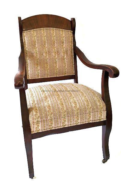 Middle- and upper-class homes during the Victorian era owned a parlor set comprised of specific pieces of furniture, including various types of chairs and a sofa, that was purchased for entertaining guests in the public space of a home. This set of chairs are part of a four-piece rosewood set and features simple lines rather than the intricate, carved detailing from decades prior. The Simons family likely purchased it in the 1890s from one of the many retail furniture stores in Columbia for use in the Mann-Simons family home at 1403 Richland Street. In keeping with the gender-specific use of parlor set pieces, this arm chair, which is slightly larger than the side chairs, would have been used by the gentleman of the household.Furniture Details