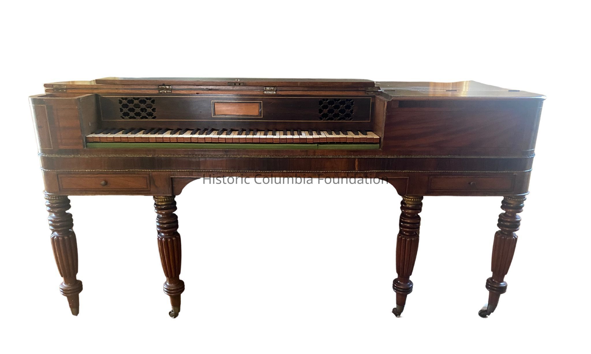 Pratt Place was a hub for piano manufacturers, such as Henry Gunther and George Horwood whose partnership lasted from 1823 until 1836. Piano retailer John Siegling (1791-1867)order this piano from Gunther and Horwood and then sold it out of his shop in Charleston sometime before 1865 when ownership of the music store passed to Siegling’s son.