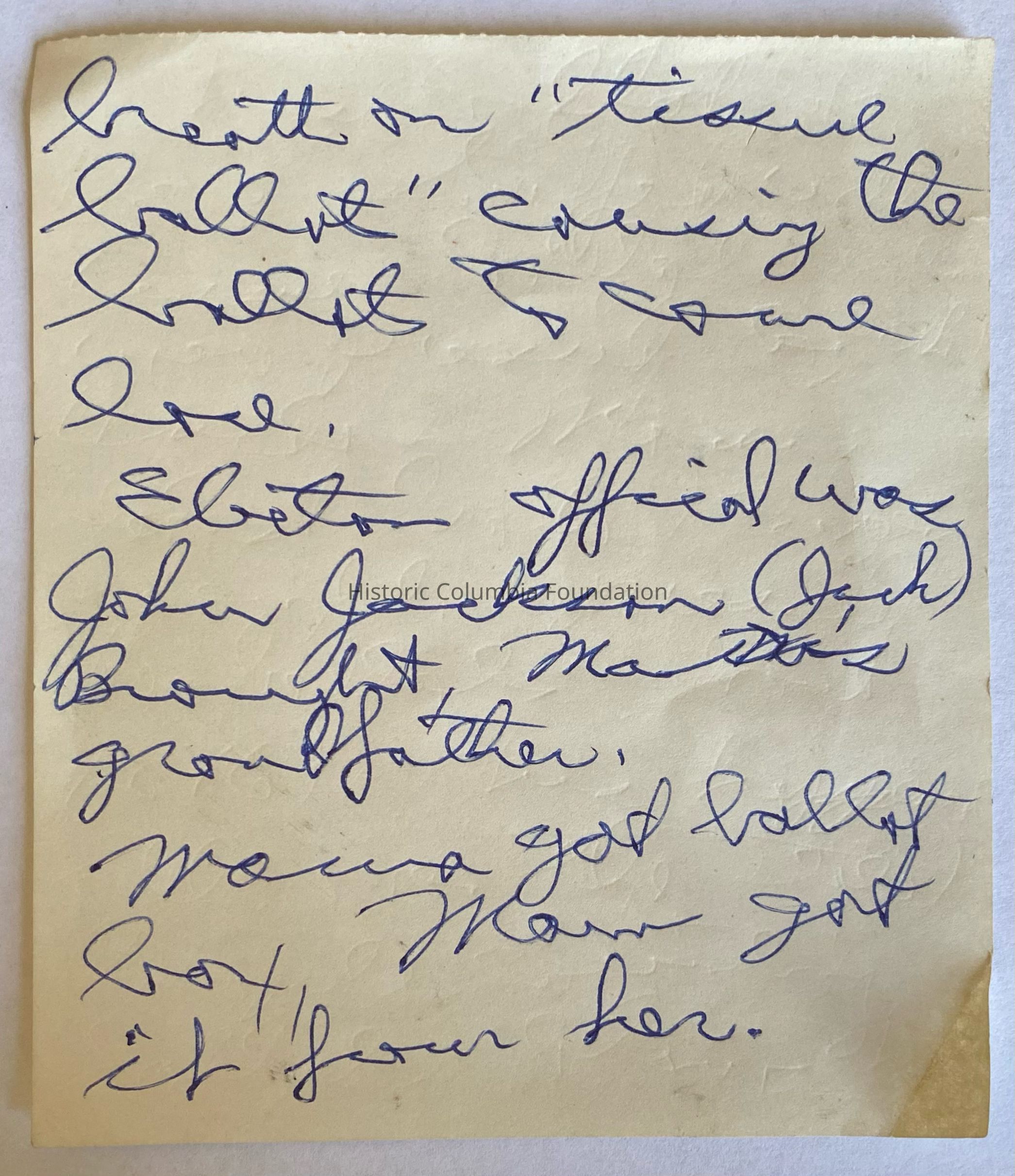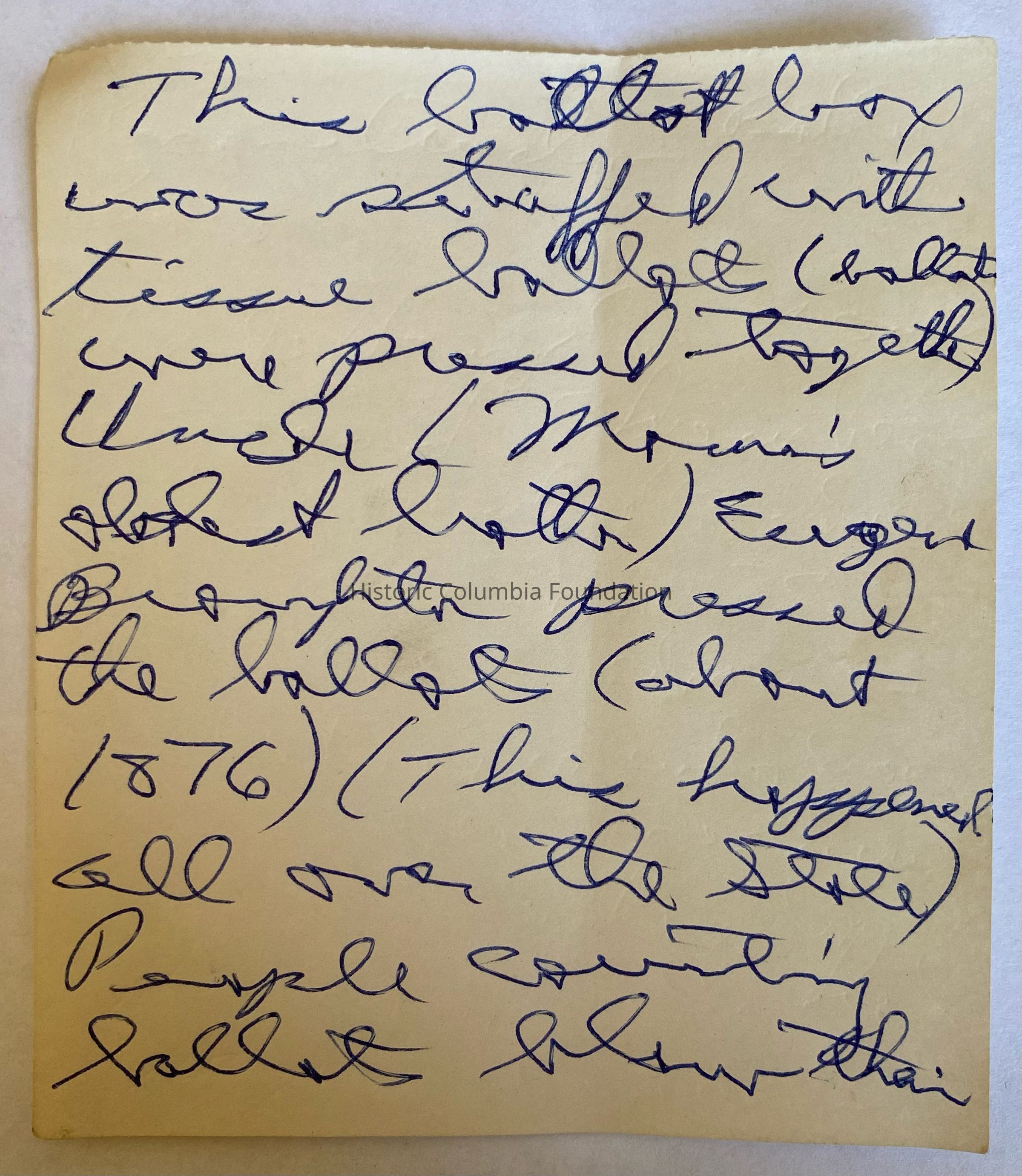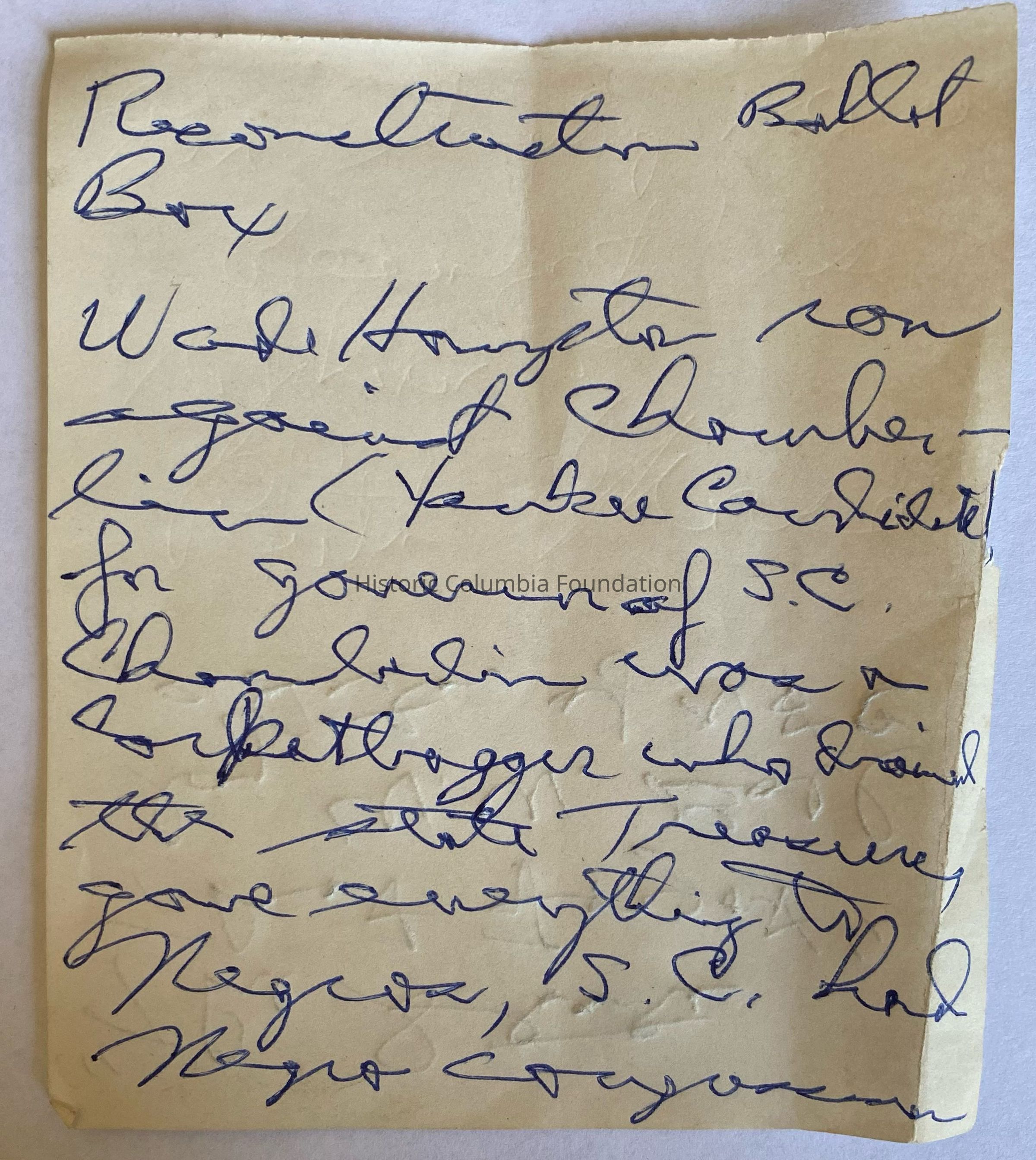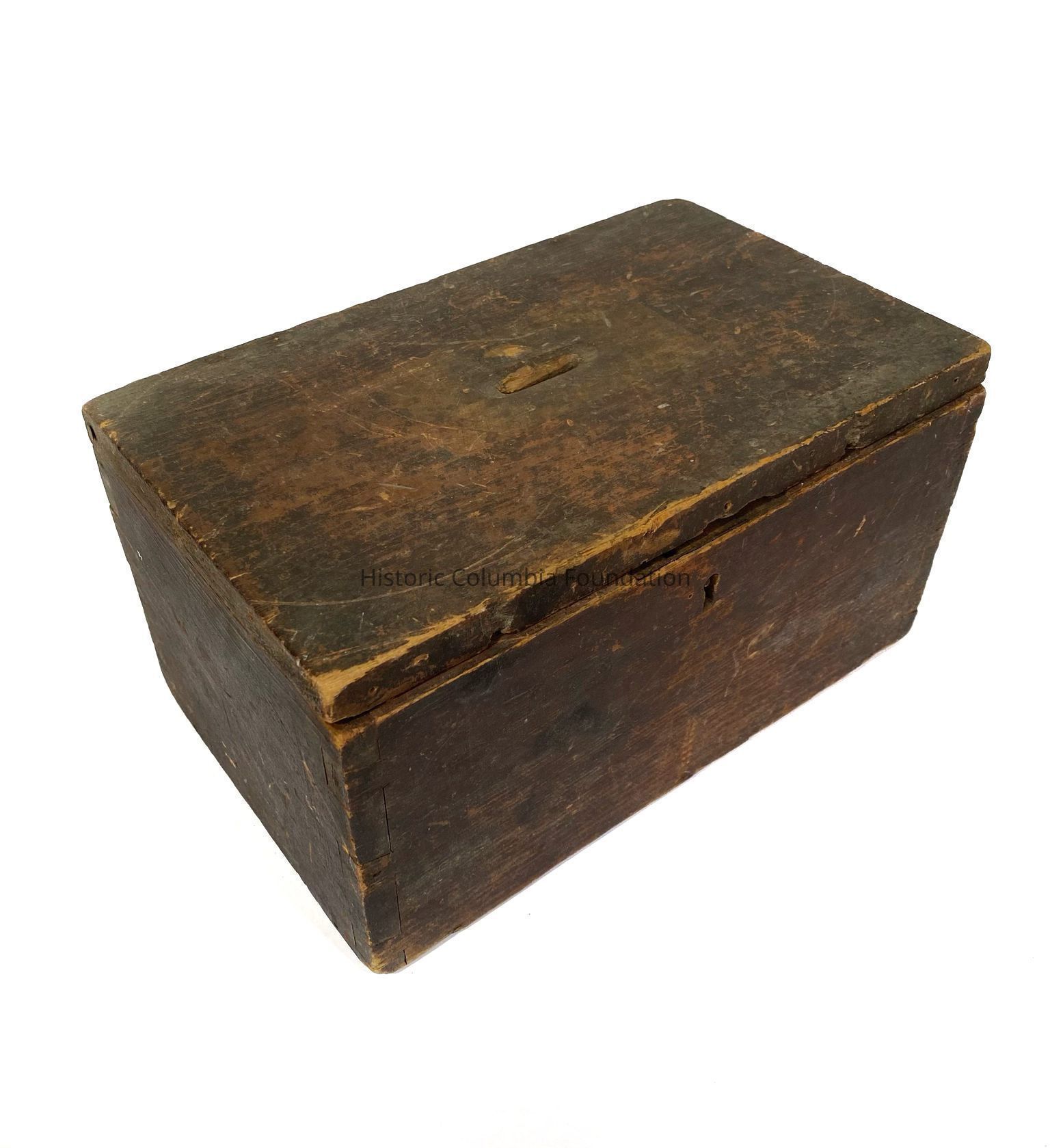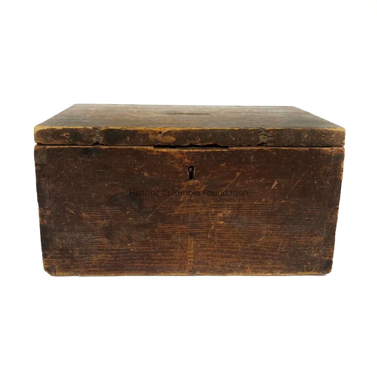 This box collected ballots in Fulton, Sumter County, South Carolina, during the state's 1876 election. According to a four-page note donated with it, “this ballot box was stuffed with tissue ballots….This happened all over the state. People counting ballots blew their breath on ‘tissue ballots’ causing ballots to come loose.” Individuals mentioned in the note include election official Jackson J. Broughton (1829–1898), a Civil War veteran and farmer, who directed his eldest son, Eugene (1862–1932) to “press” together one or more tissue ballots inside a regular ballot; the father kept the box as a memento to be passed down to his descendants.