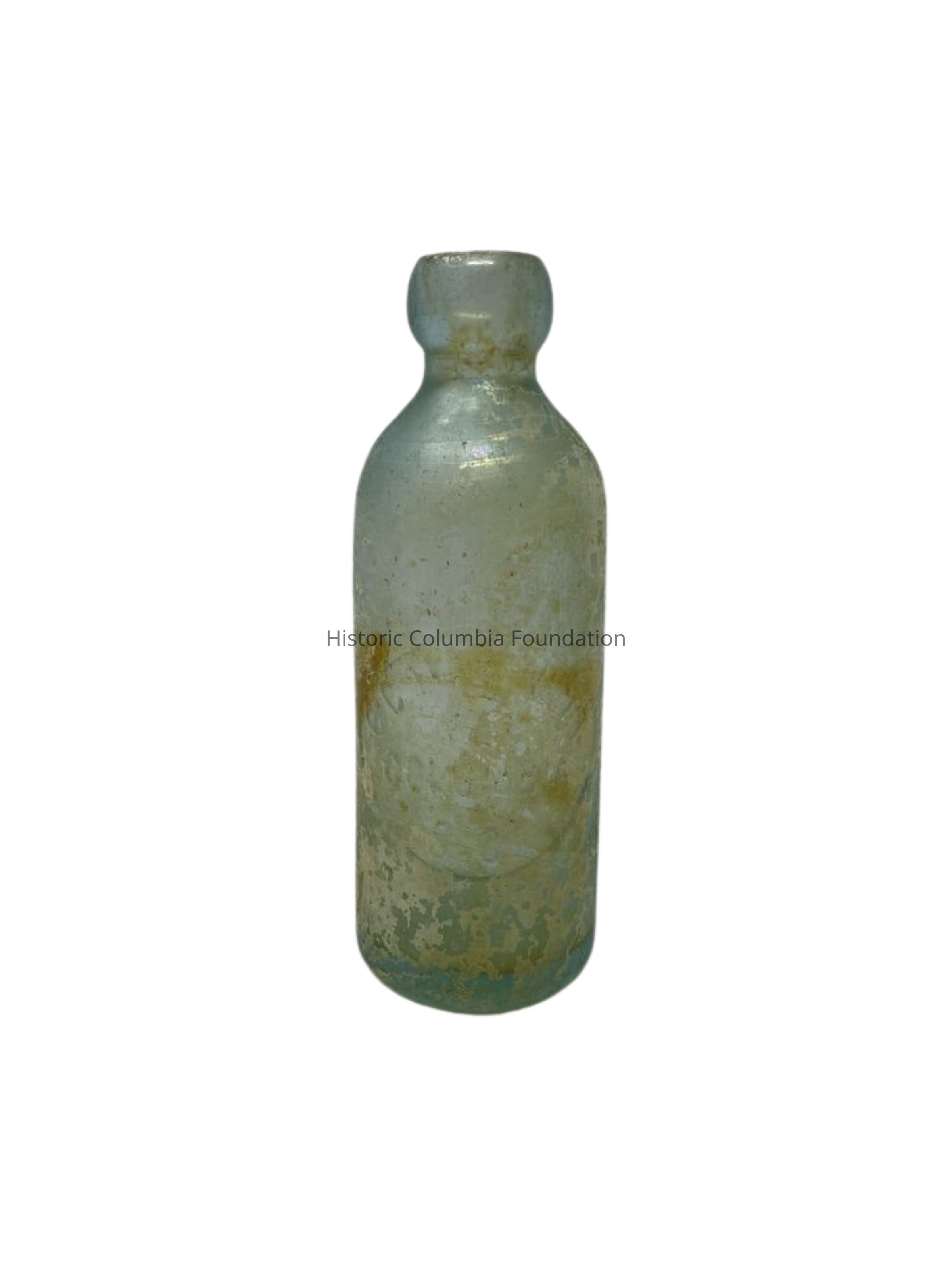This bottle was produced at Habenicht's bottling facility sometime between 1880 and his death in 1898. Likely used for soda water given its size, the bottle once featured a Hutchinson-type closure that allowed users to push or pull a metal wire to open or seal it with a rubber gasket. Beverages in Habenicht's saloon would have been chilled on ice and consumed on the spot, with satisfied customers returning the glass bottle to get back the two-cent premium they paid on their five-cent soda—indicated by the number "2" embossed on the bottom of the bottle.Made/Created