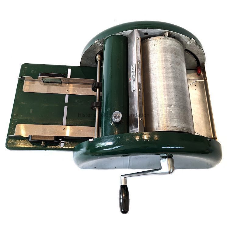 This duplicator, released in 1949, was a predecessor to the modern copier. It produced 140 paper copies per minute from a single wax stencil. Its method and machine was invented in 1923 by Wilhelm Ritzerfeld of Germany; while the technology was reproduced worldwide, the best-known manufacturer was the Ditto Corporation of Illinois.