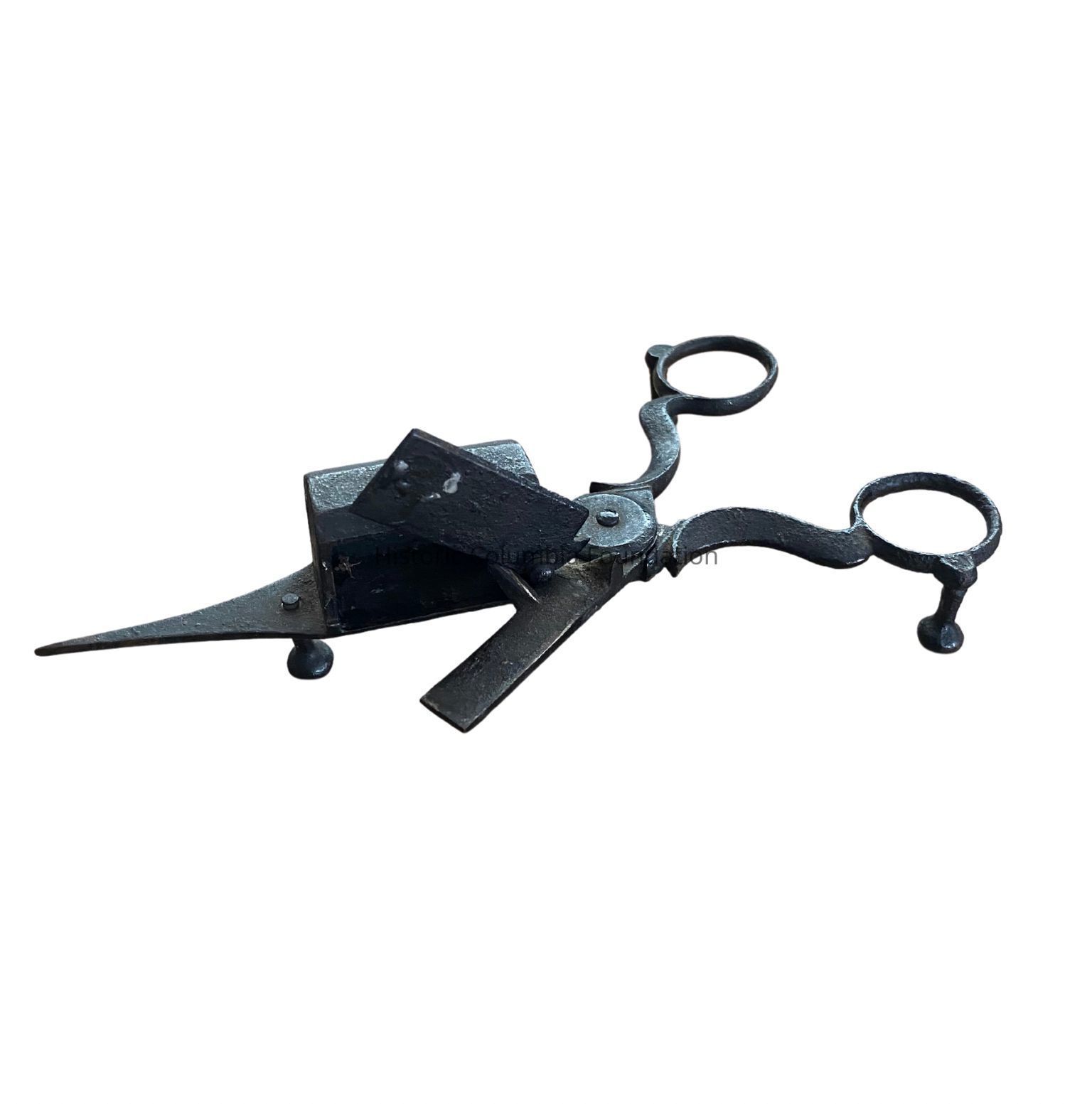 Candlesnuffers—which are still used today but are less of a household staple—were used to extinguish a candle. Scissor-like ones like this were also used to trim the wick off a candle.