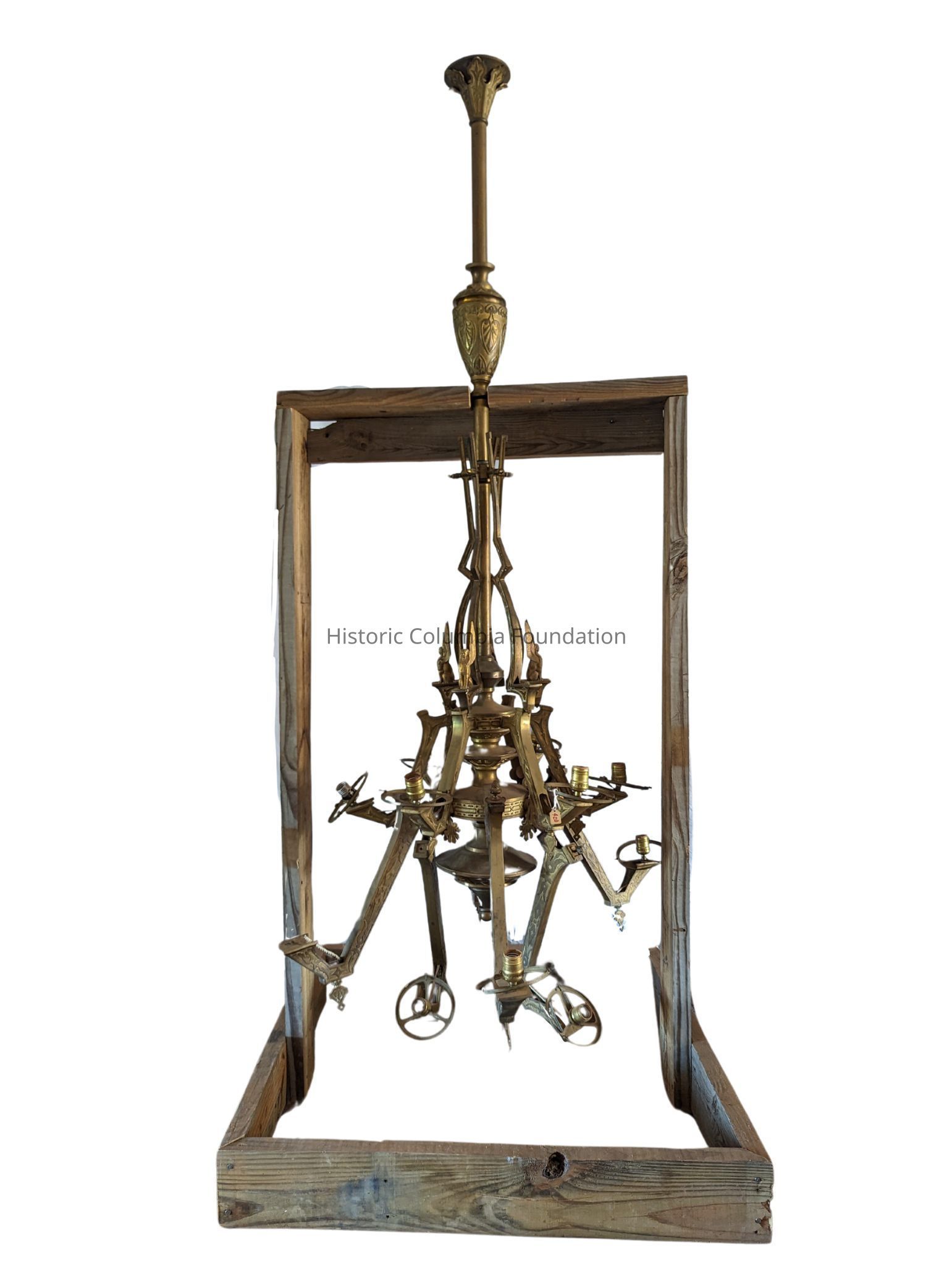 This chandelier is believed to have been hung in the Hampton-Preston Mansion during the residence of Governor Franklin J. Moses (1838-1906), who used state funds to purchase the property from the Preston family in 1873. Within a year of Moses’s purchase of the mansion, his extravagant use of state funds for entertainment and living expenses caught up with him and the property fell under the control of the state’s Sinking Fund Commission.