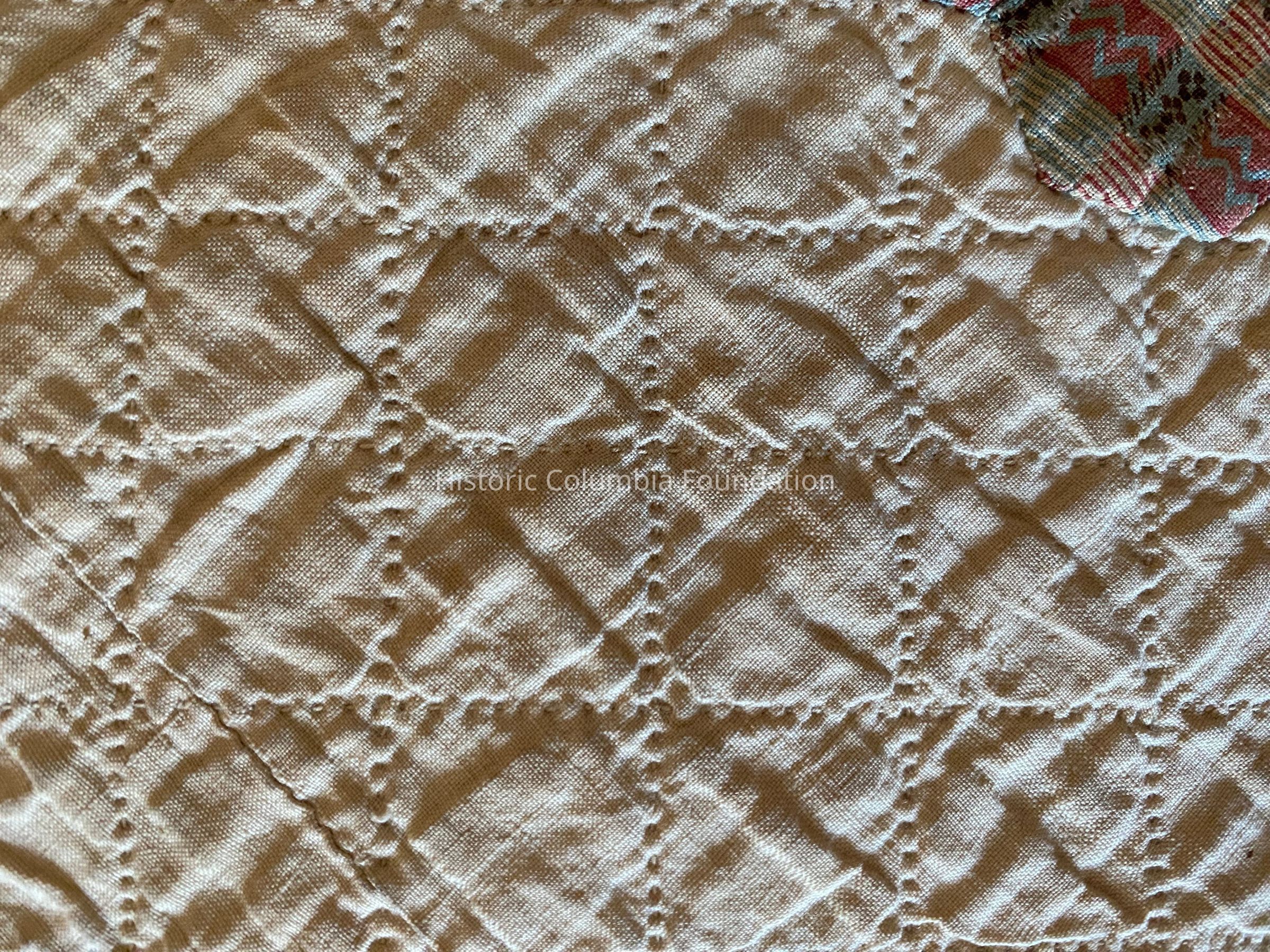 In 1815, at age 22, Eliza married Dr. Roderick Murchison (1793-1820). They had at least two children survive infancy, one of whom was Jane M. Murchison (1818-1828), who at age 8, completed a sampler that is also part of Historic Columbia's permanent collection (HCF 1970.25.1). Eliza, well-known in her family for her skill with needle and thread, seemed to have taught young Jane to sew prior to Jane's death in 1828. While the occasion is unknown, this quilt was intended for Eliza's first cousin, Aaron B. Jones (1812-1892), of Manchester, Connecticut.Made/Created