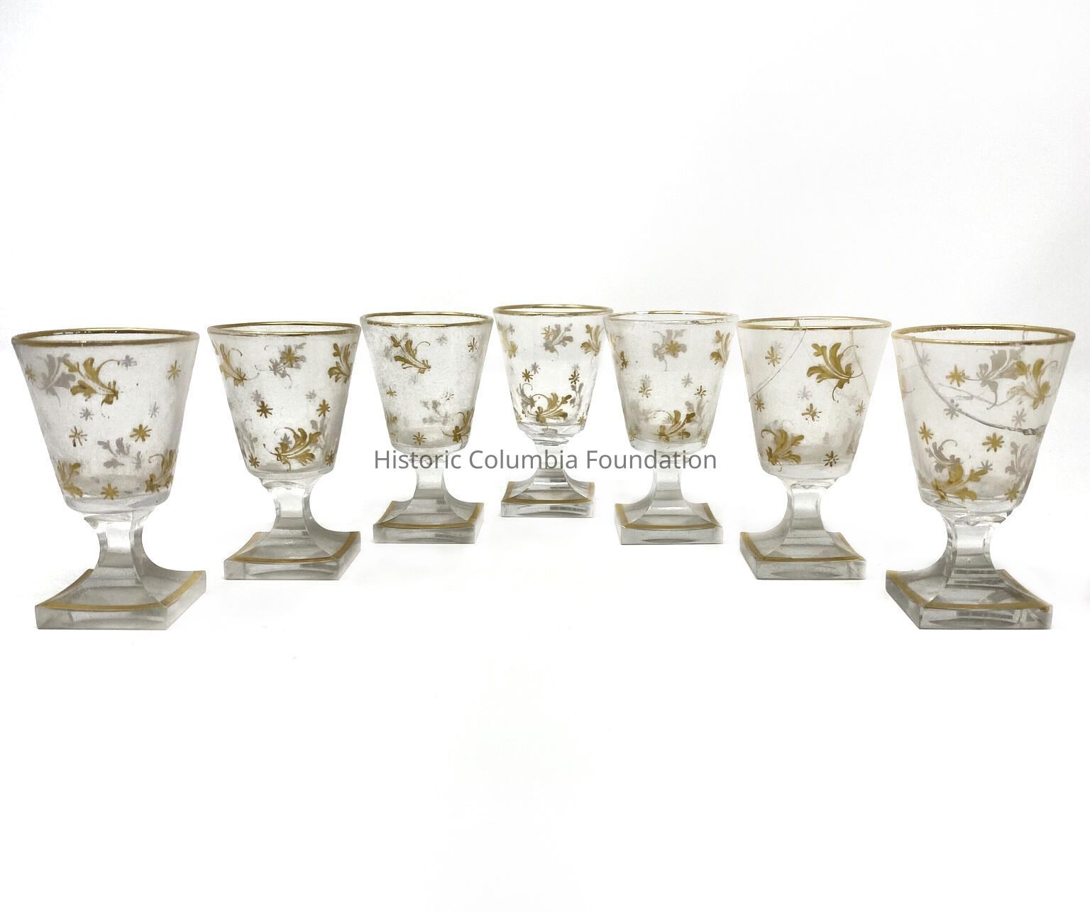 Reportedly owned by Wade Hampton III (1818-1902), this set of of cordial glasses was used to serve alcohol.