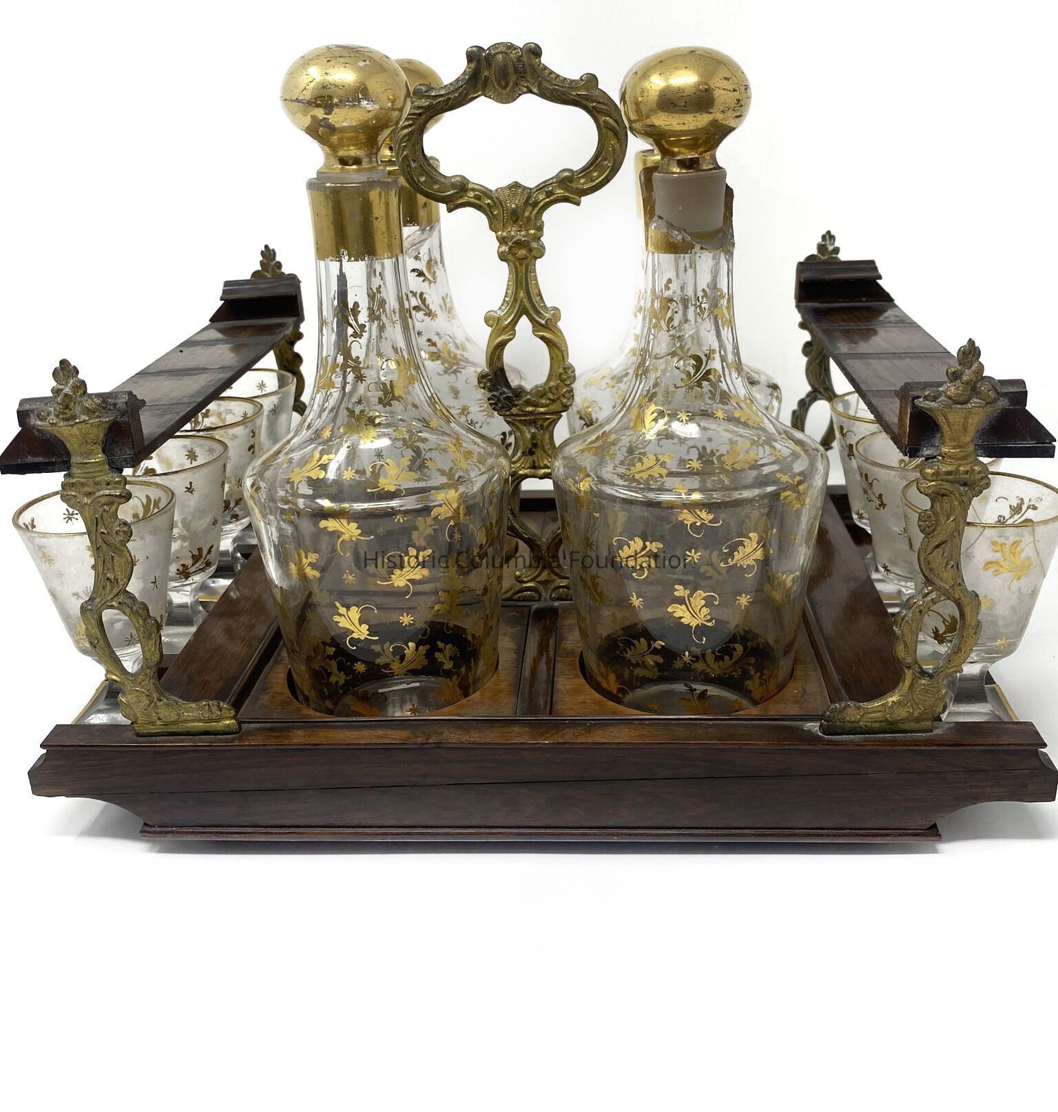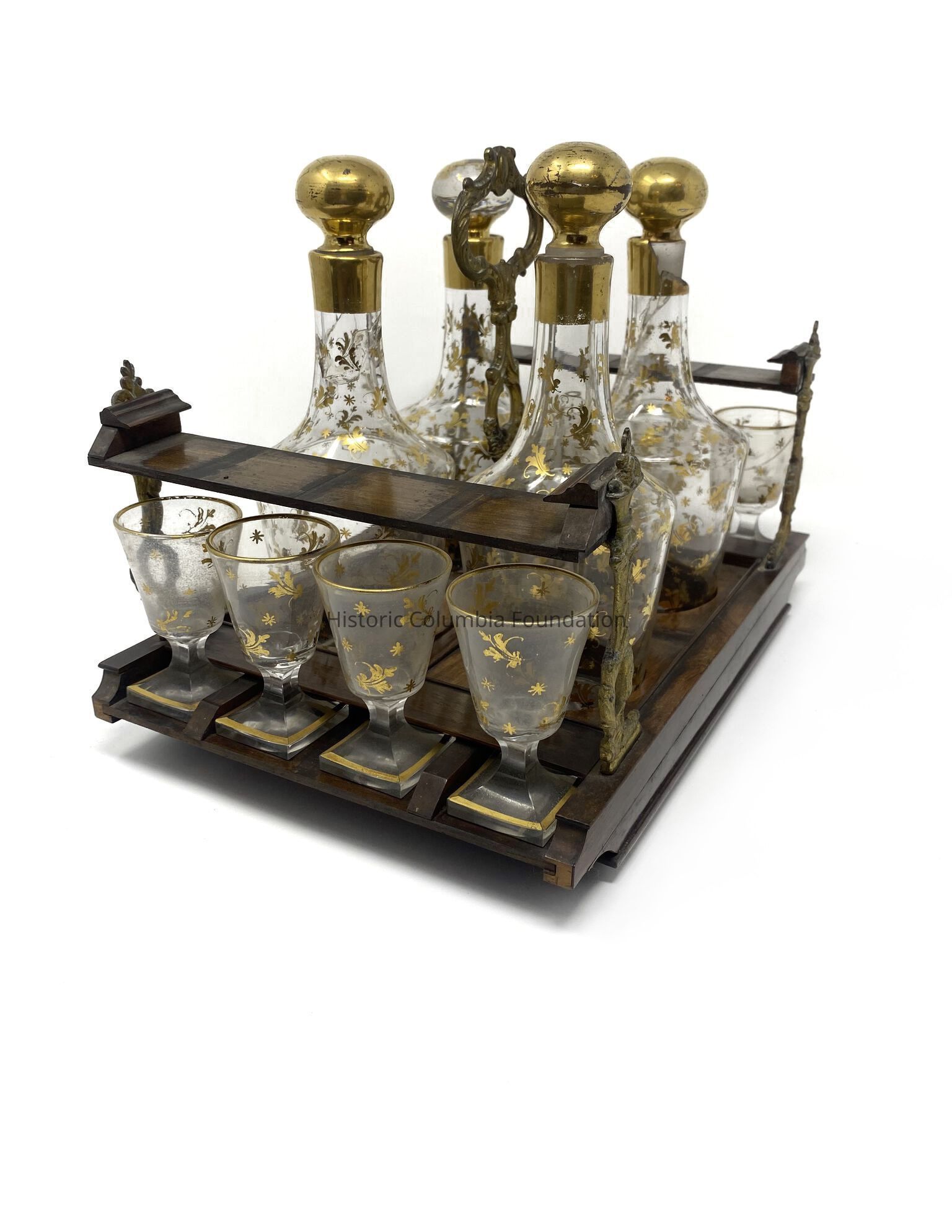 After his father’s death in 1858, Hampton III inherited both substantial property and substantial debt. Although most of Hampton III’s wealth—comprised of or built by the people he enslaved—was lost during and after the Civil War, he remained an influential part of state and national politics until his death. As the main Hampton family homes in Columbia, including Hampton III's Diamond Hill, were burned during the Civil War, its possible this decanter set came from Wild Woods in Mississippi.Dimensions