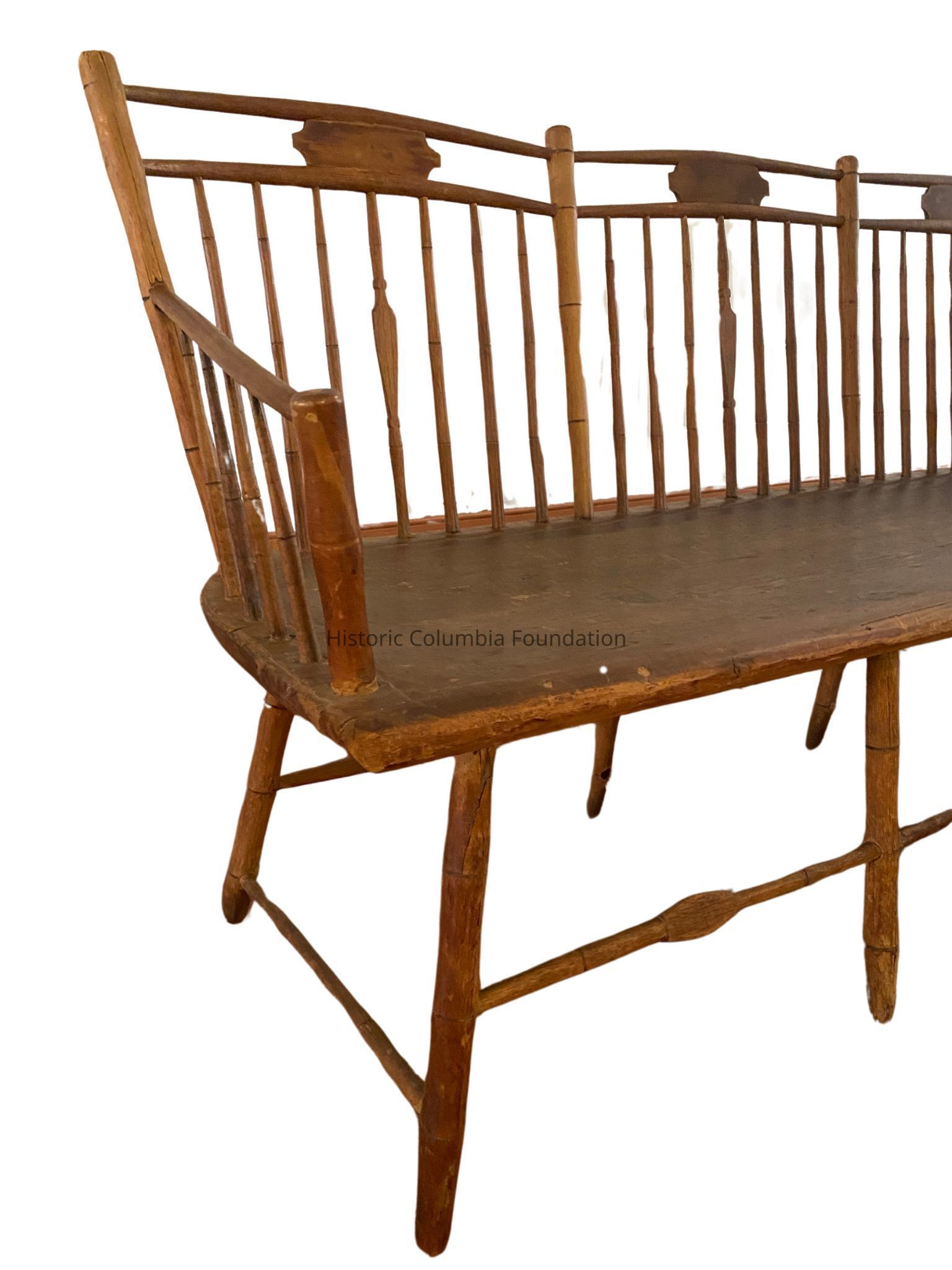 Designed in the 17th century as an alternative to gothic benches and the medieval pews that came before them, settees are essentially armchairs that have been extended to seat multiple people. Later replaced by the sofa, settees were traditionally covered in upholstery and situated in drawing rooms and long hallways. This settee is said to have come from a plantation near Ridgeway, South Carolina.Furniture Details