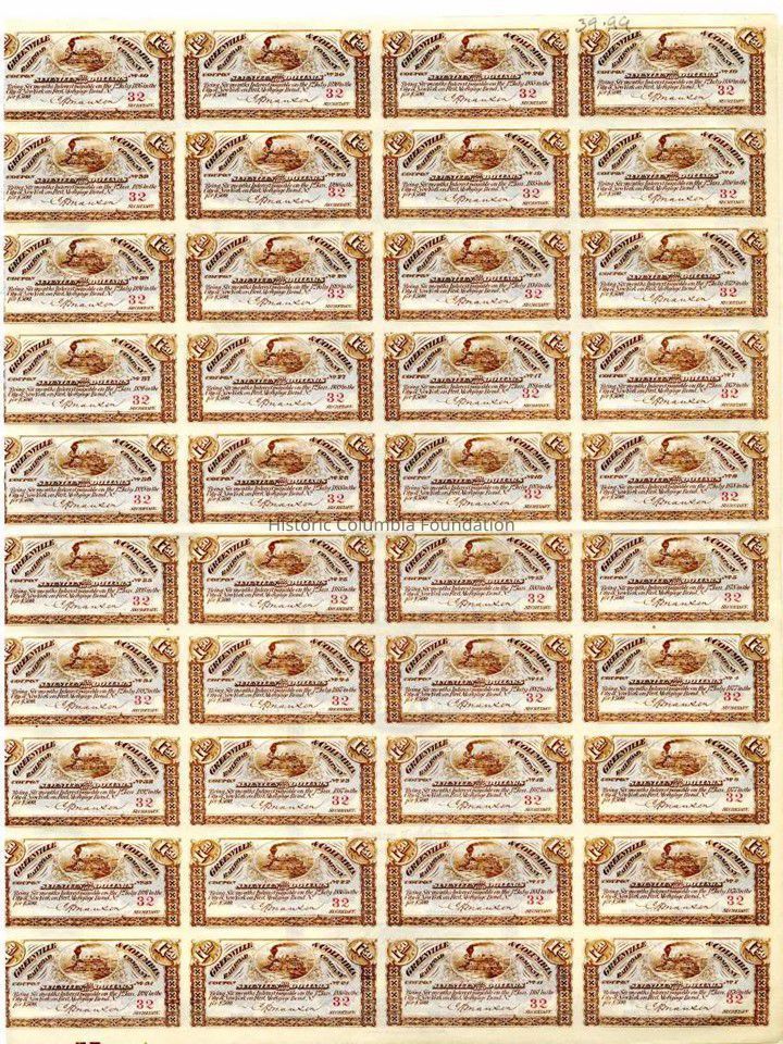 Owners of the Greenville and Columbia Railroad mortgage bonds clipped coupons from their certificates every six months, which they sent to the issuer to receive interest payments. This bond came with forty coupons attached for semi-annual payments over twenty years.