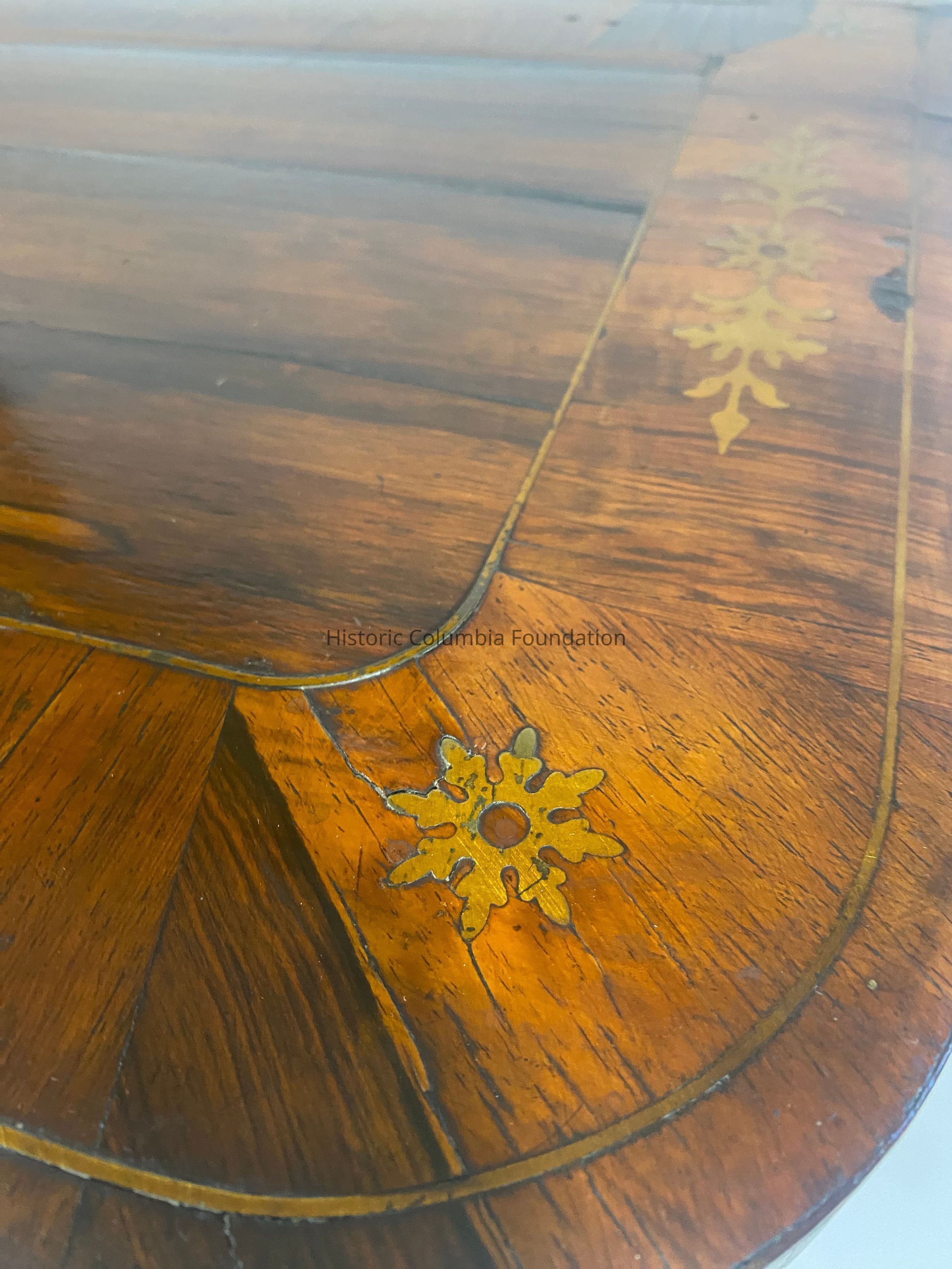Game tables first gained popularity in England during the late 17th century, under the reign of King Charles II (1630–1685), and only increased in popularity over the following two centuries. Designs for game tables became increasingly elaborate, many featuring adornments such as brass inlays, marquetry, carved feet, and intricate woodwork around the base and stem. As the middle class eventually grew wealthier, built larger houses, and enjoyed more free time, game tables became accessible to more than just the elite upper class. Because of their versatility and relatively compact size, most middle- and upper-class households were equipped with at least one game table during the Regency (c.1795–1837) and Victorian (1837–1901) eras.Inscription/Signature/Marks