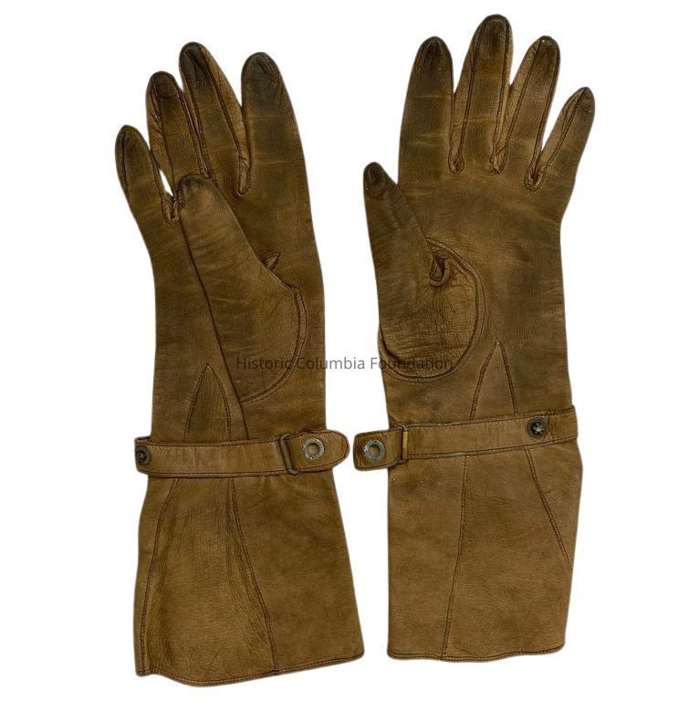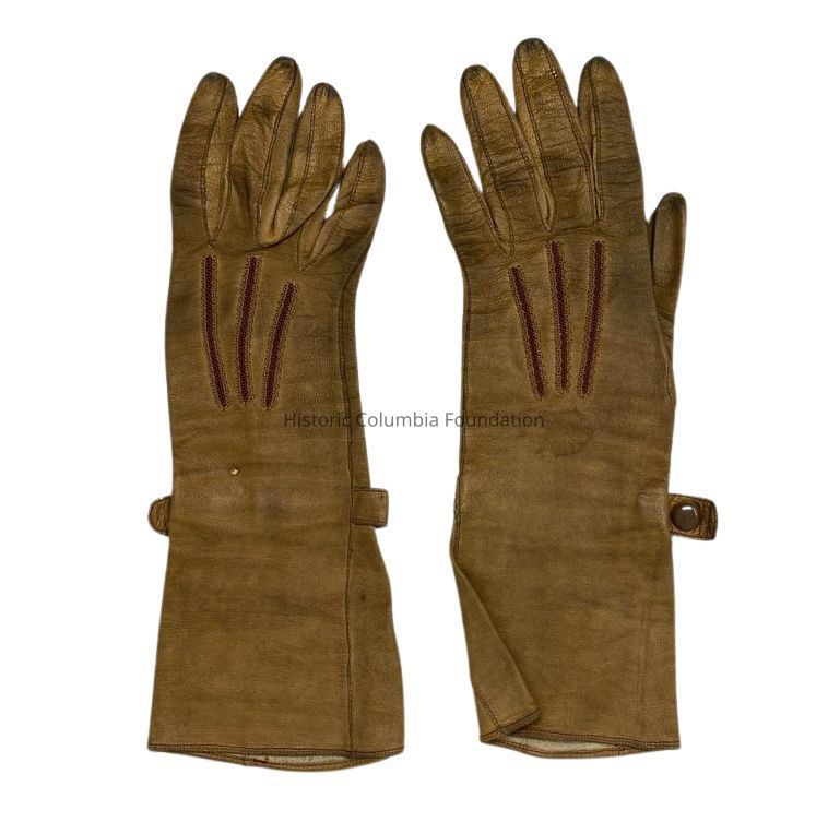 These gloves were once owned by Videau Legare Beckwith (1874–1944). Born in Charleston and raised in Aiken, Videau moved to Columbia shortly after the Presbyterian College for Women (later Chicora College) was established in the Hampton-Preston Mansion in 1890. After leaving Columbia, Videau attended the School of Expression in Boston and, in 1900, married Reverend Samuel Cary Beckwith (1870–1939), with whom she had three children.Clothing/Dress/Costume Details