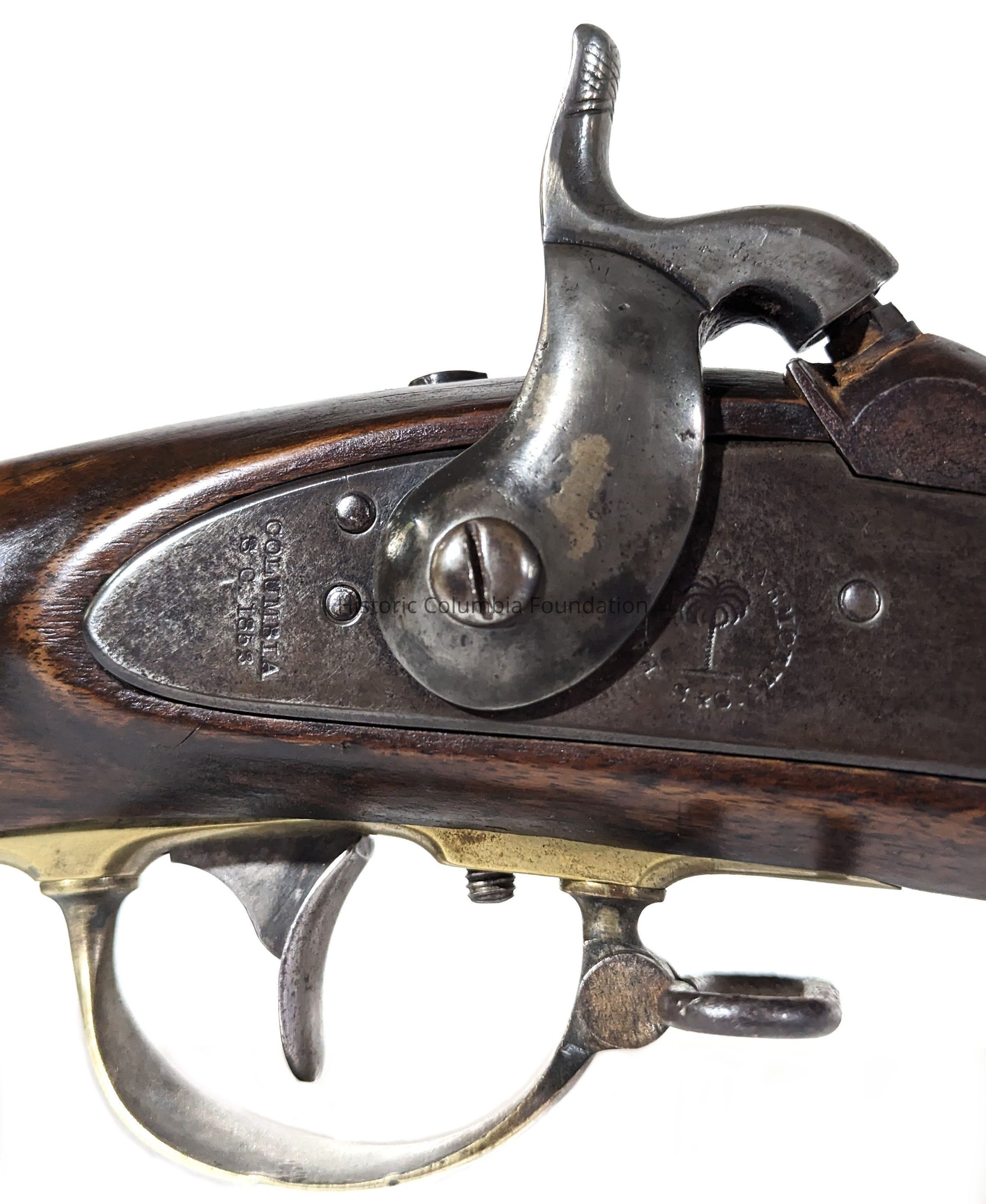 Of the 1,000 rifles manufactured by the Palmetto Armory between 1852 and 1853, 500 were destroyed while in storage during the Burning of Columbia occurred in February 1865, making the remaining rifles, like this one, the rarest type of surviving firearm produced by the manufacturer.Firearm Detail