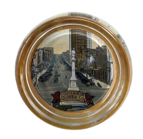 Souvenirs like this paperweight would have been purchased by visitors to Columbia and transported home as a memento of their stay in South Carolina's capital city.Context