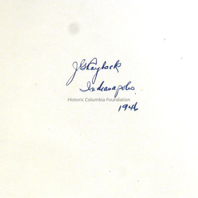 Brown-covered book. While there is not print on the front cover, the spine reads, "Reconstruction in South Carolina, 1865–1877, John S. Reynolds." There is a name, place, and date handwritten on the second interior page: "J Grayback [possibly Hayback], Indianapolis, 1946."Context