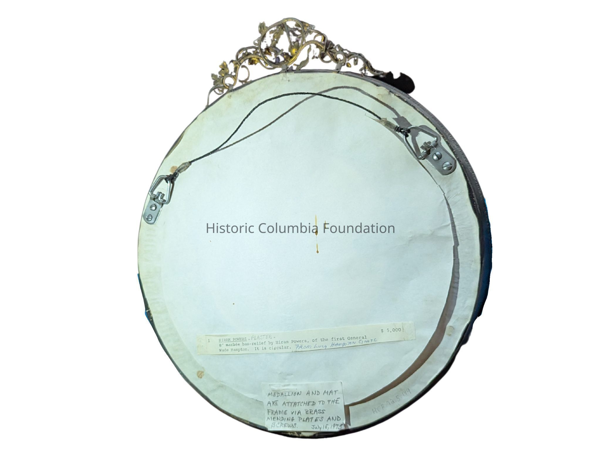 His daughter, Caroline Hampton Preston (1807–1883), married John Smith Preston (1809–1881), and they lived in the Hampton-Preston Mansion. They were patrons of American sculptor Hiram Powers (1805–1873), who created several works of art for the family, including a fountain, a bust, and this casting, all part of Historic Columbia's permanent collection.