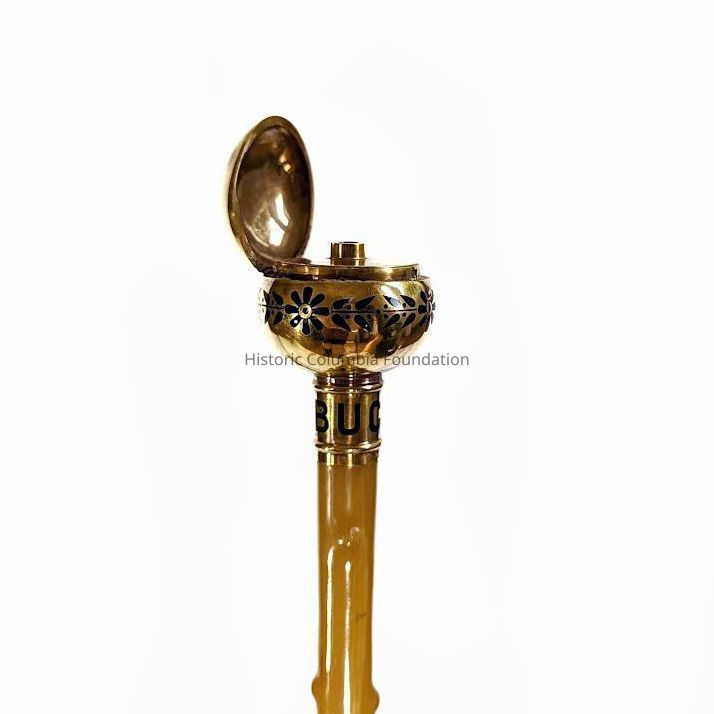 This riding crop was presented by Emperor Napoleon III (1808–1873) to Sarah Buchanan Campbell Preston (1842–1880), the daughter of John S. Preston (1809–1881) and Caroline Martha Hampton (1807–1883). Better known as Sally, Buck, or Buckie, Preston was an avid equestrian. She received an education in Paris, where she caught the eyes of Napoleon III. While the details surrounding Napoleon’s gift are uncertain, it is possible Napoleon was trying to win her favor, as Buckie was deemed “the most beautiful of all Southern belles” by Henry Simmons in "A Concise Encyclopedia of the Civil War." In 1868, Buckie married Colonel Rawlins Lowndes (1838–1919) of a wealthy Charleston family. Their marriage was the final family marriage to occur in the Hampton-Preston Mansion.Relationships