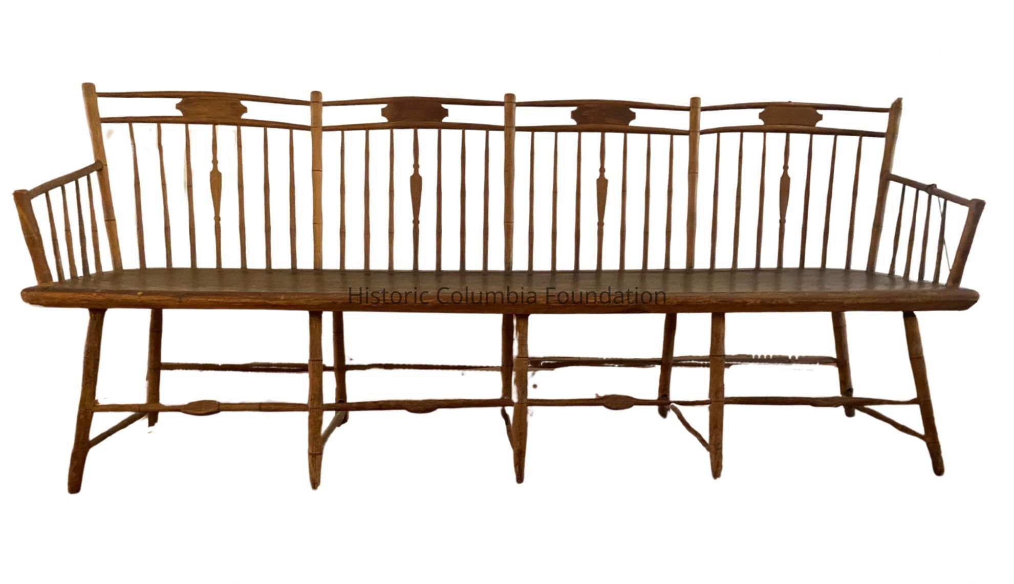 Designed in the 17th century as an alternative to gothic benches and the medieval pews that came before them, settees are essentially armchairs that have been extended to seat multiple people. Later replaced by the sofa, settees were traditionally covered in upholstery and situated in drawing rooms and long hallways. This settee is said to have come from a plantation near Ridgeway, South Carolina.Furniture Details