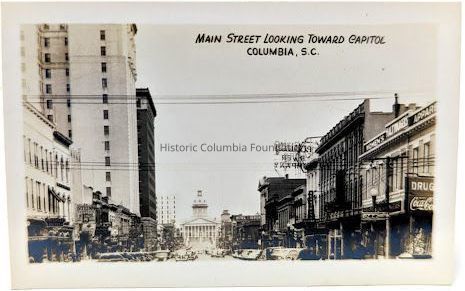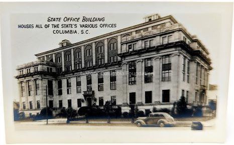 The box includes photos of the following Columbia landmarks: South Carolina State Capital, Columbia Bible College, Trinity Episcopal Church, Ridgewood Country Club, University of South Carolina Library, Jefferson Hotel, First Presbyterian Church, Columbia College, Federal Farm Bank and Credit, Governor's Mansion, St. Peter's Catholic Church and Rectory, First Baptist Church, Richland Country Court House, Campus View of University of South Carolina, U.S. Veteran's Administration Hospital, Wade Hampton Monument, Columbia Hotel, Lake Murray-Saluda Dam, State Hospital for the Mentally Ill, Woodrow Wilson's Boyhood Home, U.S. Court House, Main St., Carolina Life Building, Ruins of Millwood Plantation, and State Office Building.Dimensions