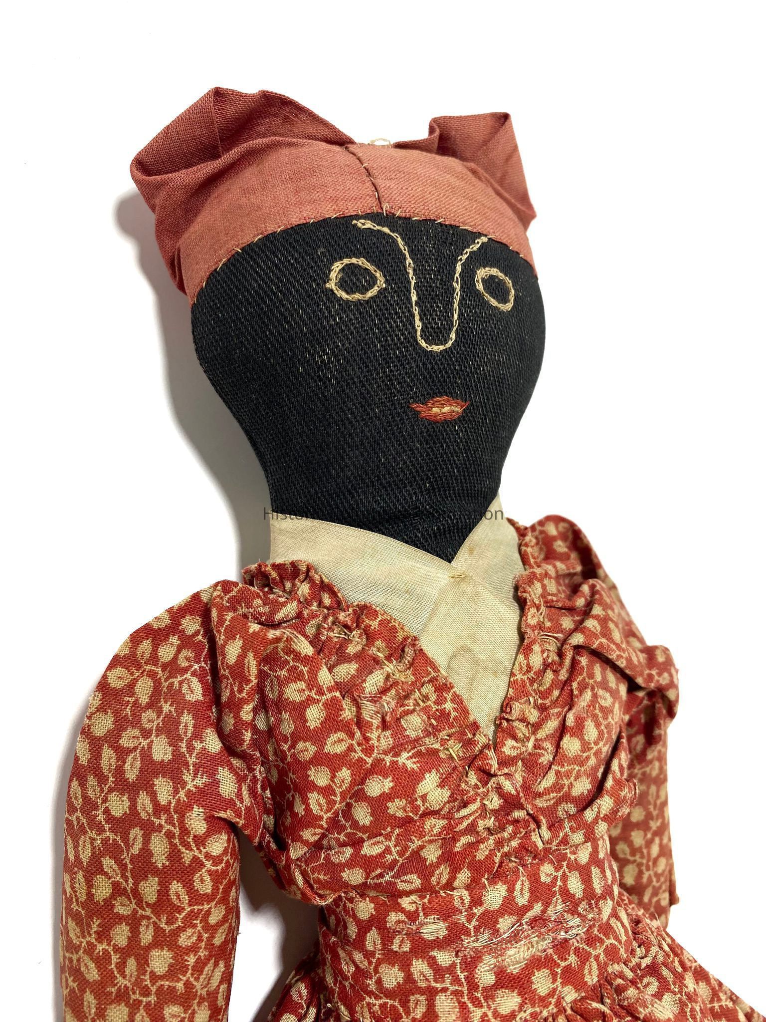 Made from the antebellum period through the early twentieth century, dolls like this became known as topsy-turvy dolls due to their double-ended, inverted design. As objects of material culture, topsy-turvy dolls have provoked a great amount of interpretive controversy. Some scholars assert these dolls were used by white children to learn and reenact racial power dynamics of the plantation and Jim Crow South. Others assert that the dolls were given to Black girls to encourage them to practice caring for Black children and the white children of their enslavers or employers. Another interpretation put forth by scholars is that, during the antebellum period, these dolls served as a subversive outlet for enslaved girls to exercise power over their white peers. Questions remain, however, on whether possession of Black or white dolls by enslaved girls was forbidden. Equally likely is the possibility that topsy-turvy dolls were used by both Black and white girls.Dimensions