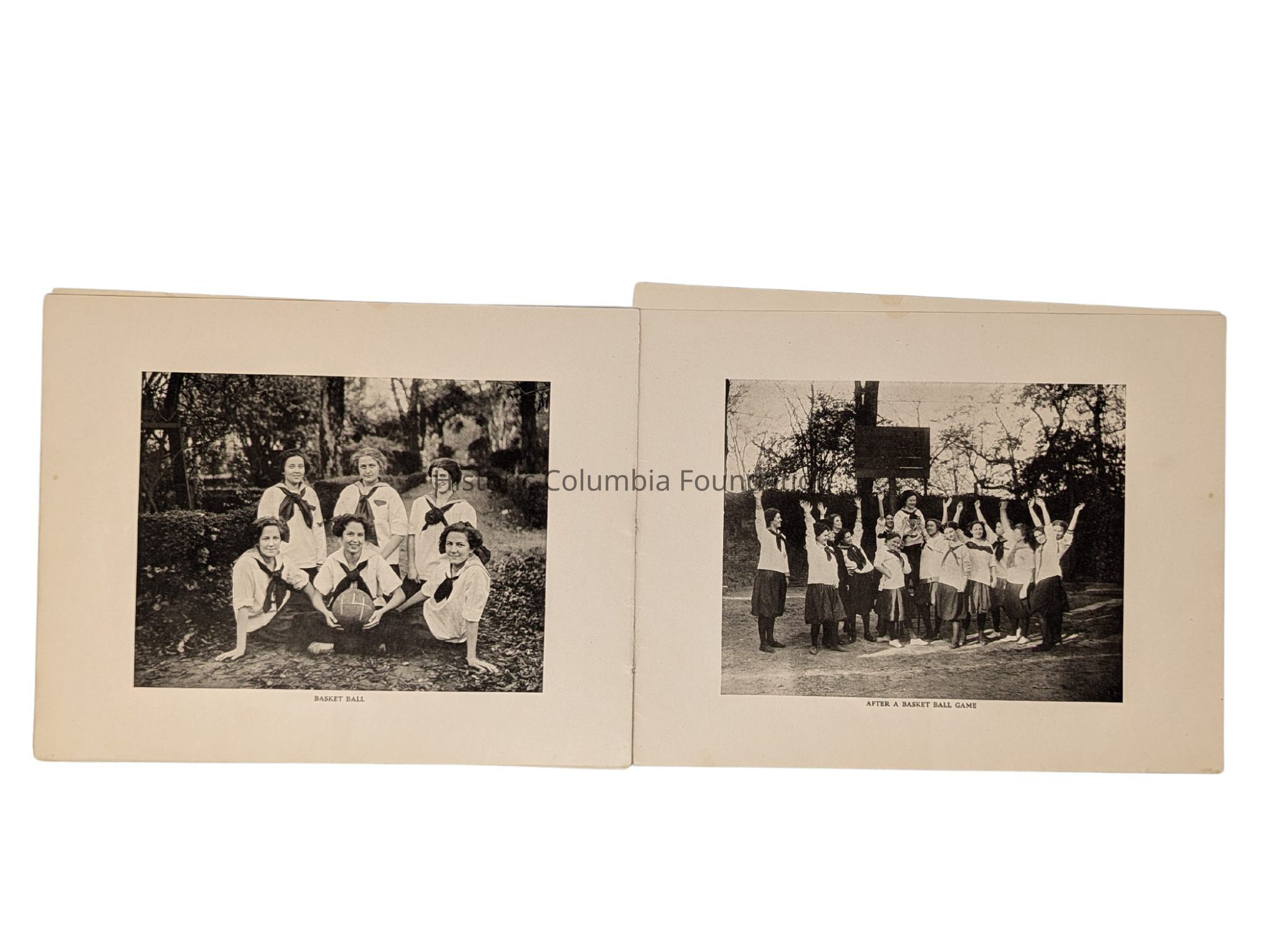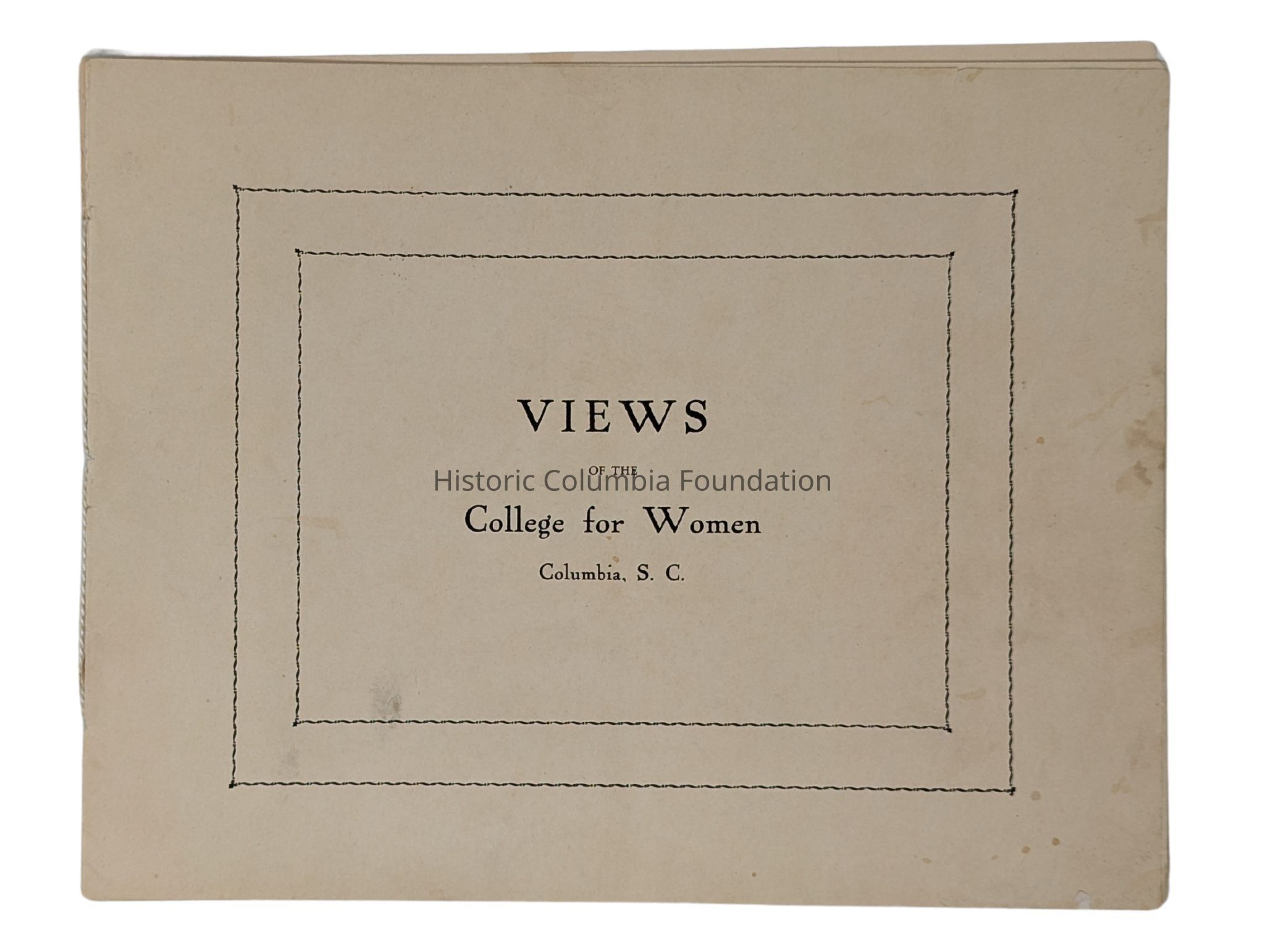 "Views of the College for Women" booklet depicting twelve black and white photographs of college students. Many of the photos include images from classes, references to Shakespeare, and images of the basketball team.Context